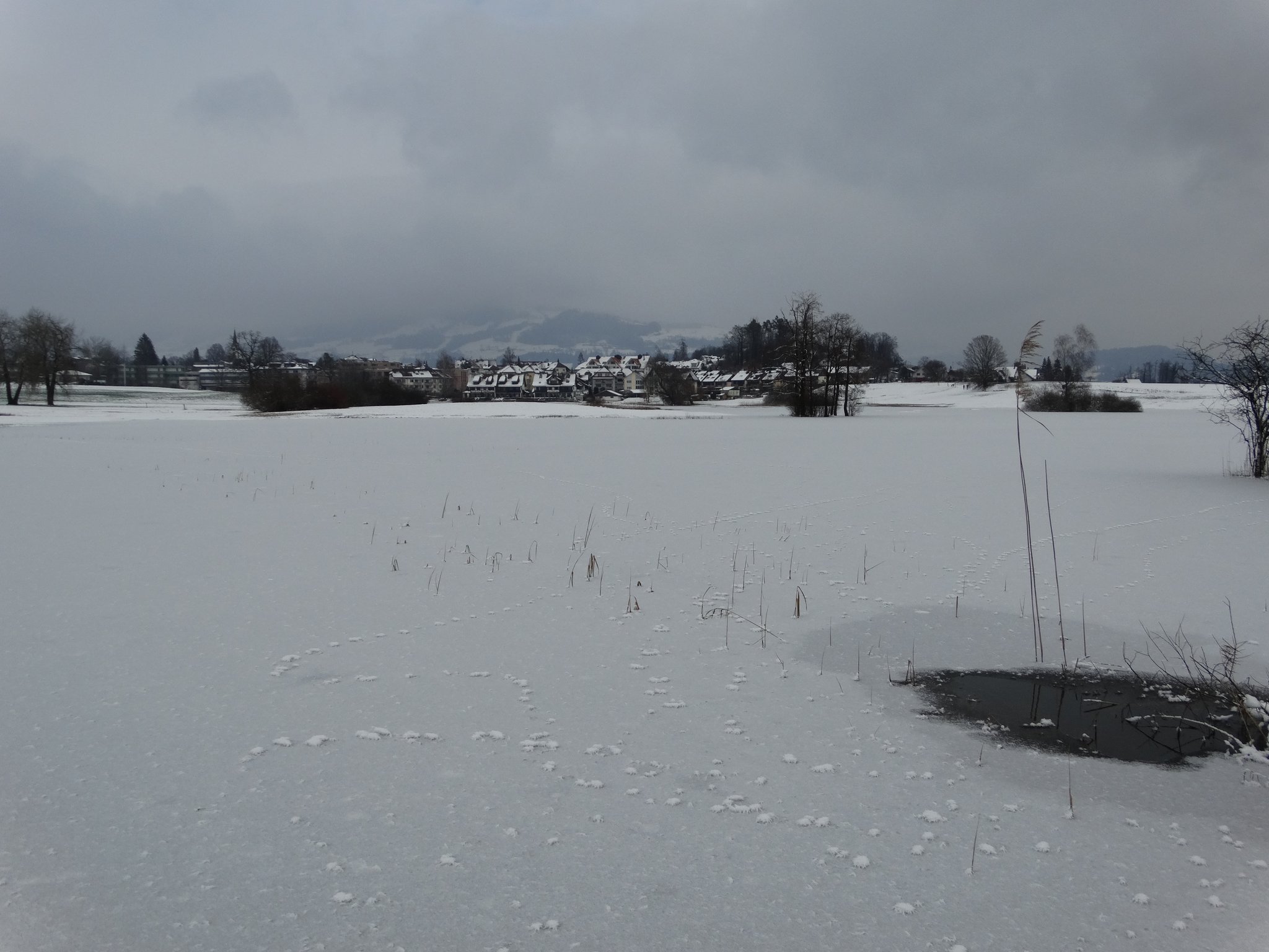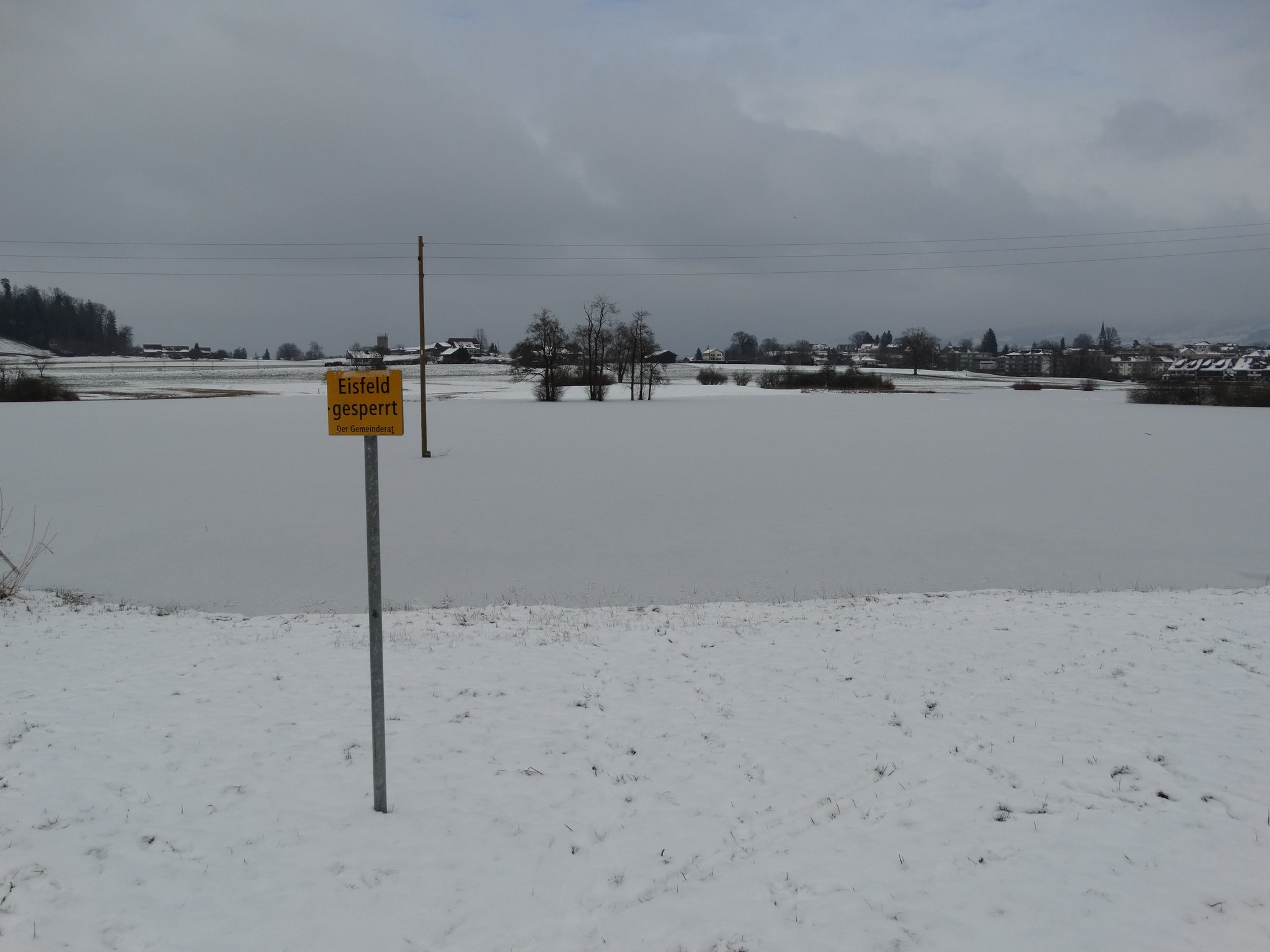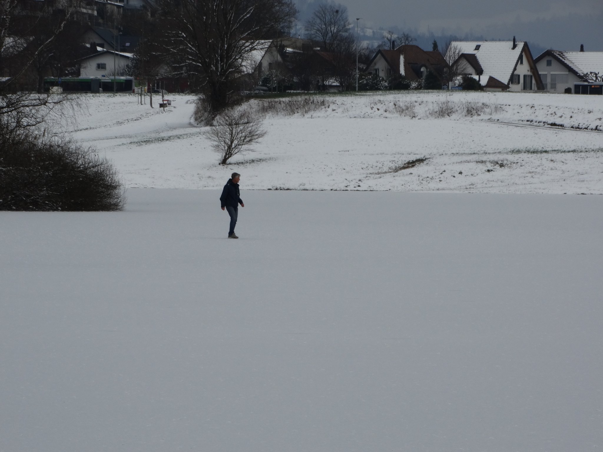 «Bubikon au lac», spöttelte der «Zürcher Oberländer» kürzlich über das frühlingshaft dahinplätschernde Hüsliriet-Stauseeli zwischen Bubikon und Wolfhausen. Inzwischen hat die kräftige Bise die Riedlandschaft in ein arktisches Eisparadies verwandelt, und obschon das Eisfeld noch gesperrt ist, finden sich bereits mutige Spaziergänger, die das Risiko eines unfreiwilligen, eiskalten Bades nicht scheuen... (bn)