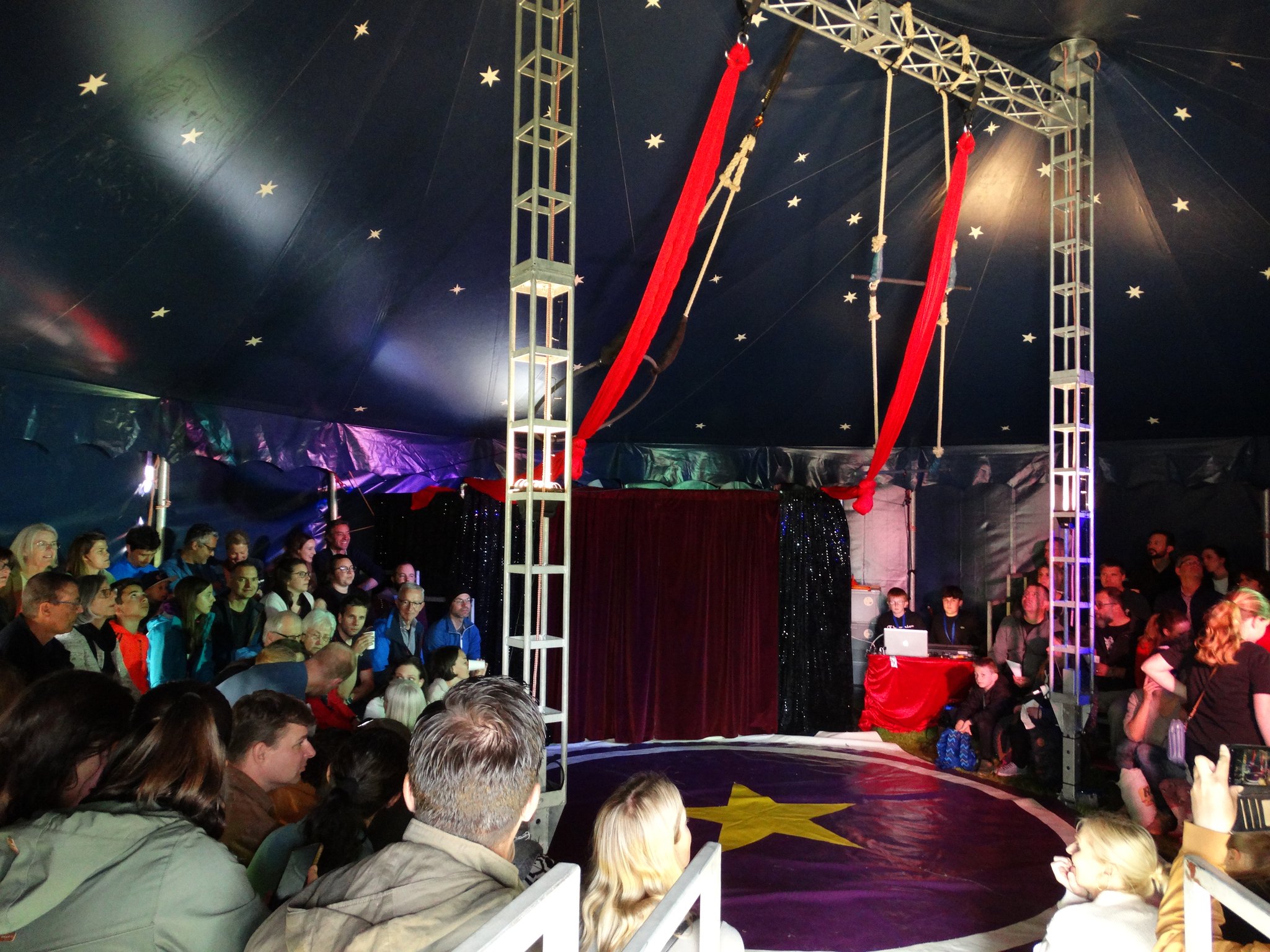 Das Zirkusprojekt ist Teil der Begabtenförderung der Primarschule Wolfhausen. Unmittelbar nach der letzten Vorstellung morgen Samstagabend soll dann das Zelt wieder abgebaut werden. Schade! (bn)