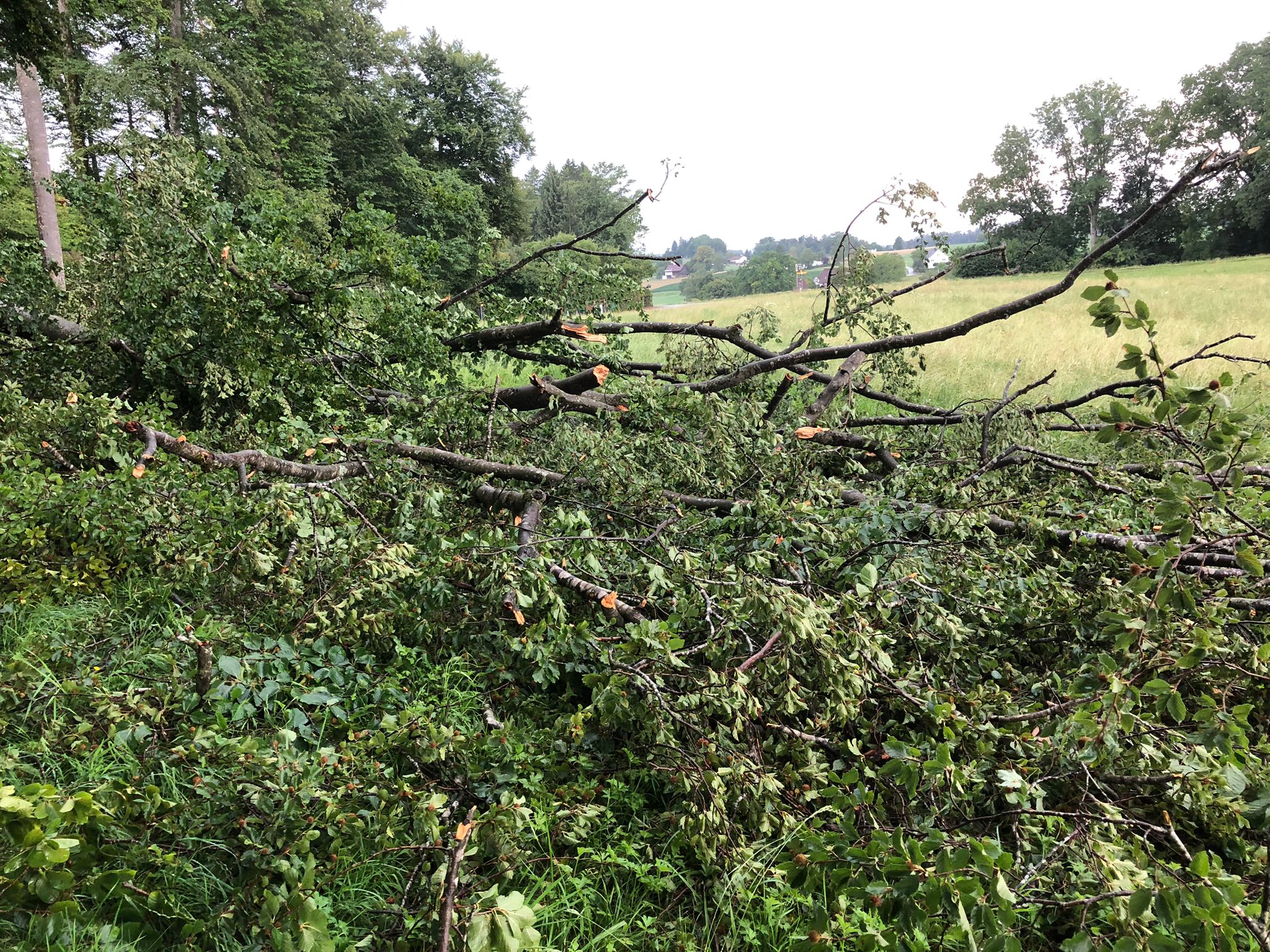 Der Gewittersturm vom Dienstagabend (11. Juli 2023) hat in Bubiker Wäldern teilweise grosse Schäden angerichtet: Im Wolfauser Waldstück «Weidolz» nördlich des Bühlhofquartiers beispielsweise sowie im angrenzenden «Lochholz» sind mehrere mächtige Buchen geknickt oder entwurzelt worden und versperren den Durchgang durch die Waldstrasse «Lochholzweg».