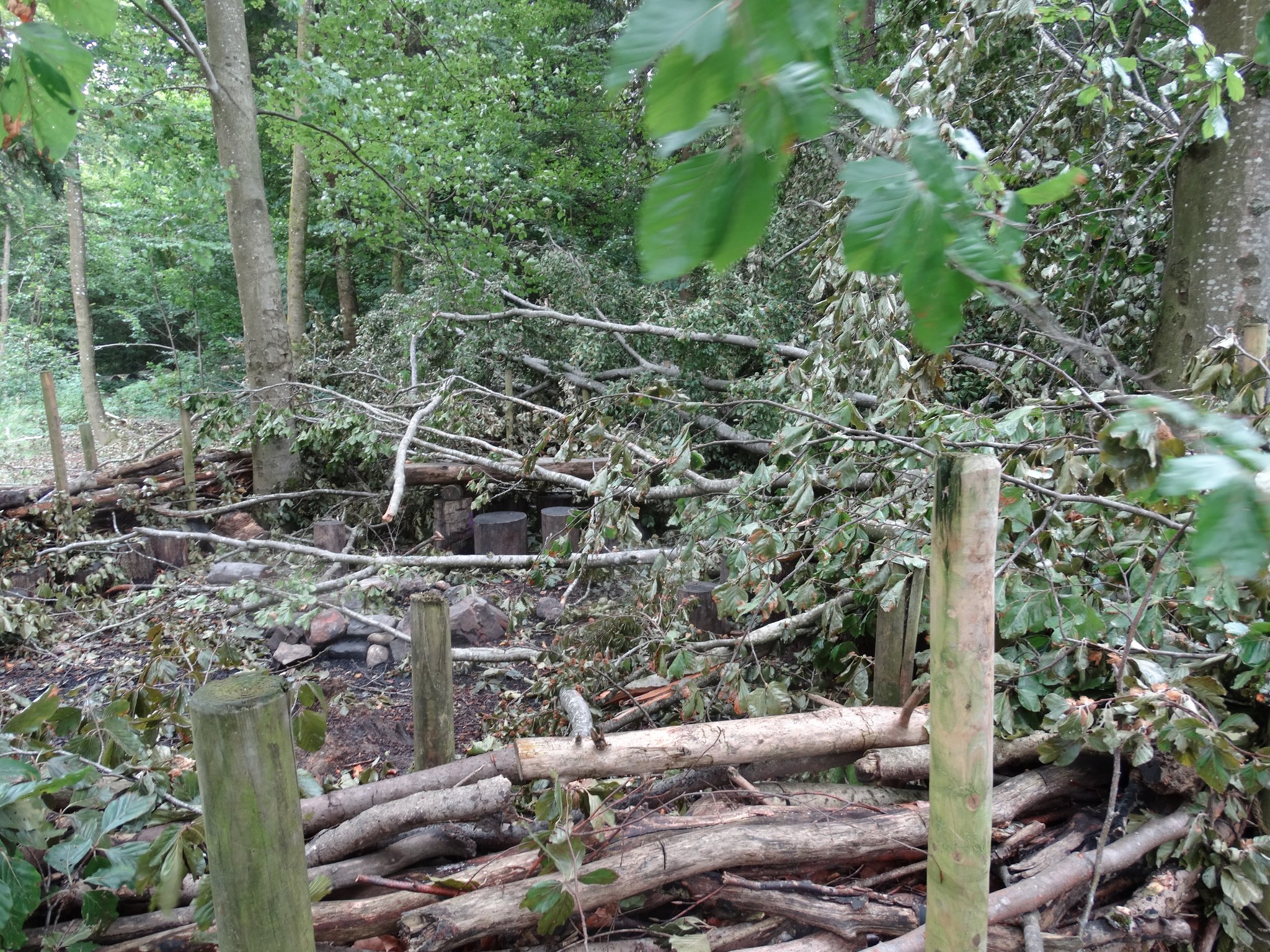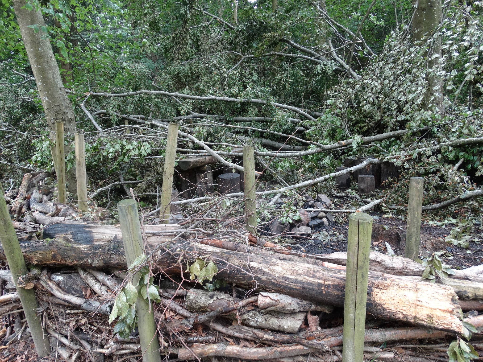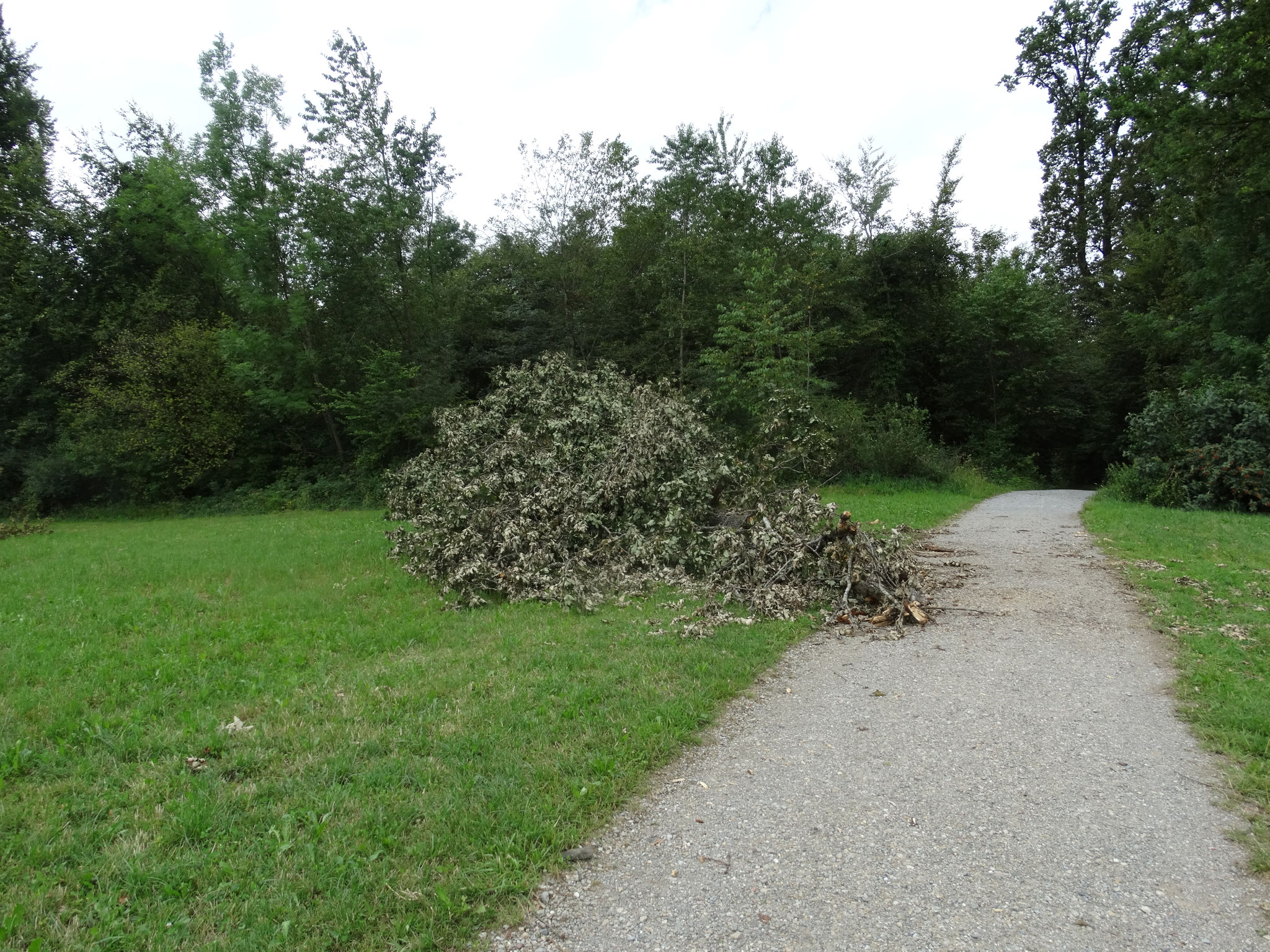 Das beliebte Waldsofa der Wolfhauser Kindergärten im Waldstück «Botzflue» ist beim Gewittersturm vom vergangenen Dienstag (13. Juli 2023) arg in Mitleidenschaft gezogen worden. Rund die Hälfte der aus Ästen gefertigten Anlage, die auch von Familien und Jugendlichen gerne als Feuerstelle benutzt wird, liegt unzugänglich unter einer entwurzelten Buche begraben.