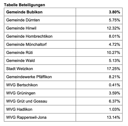Der Gemeinderat Bubikon beantragt laut Mitteilung daher den Stimmberechtigten, der Umwandlung der GWVZO zu einer Aktiengesellschaft zuzustimmen.