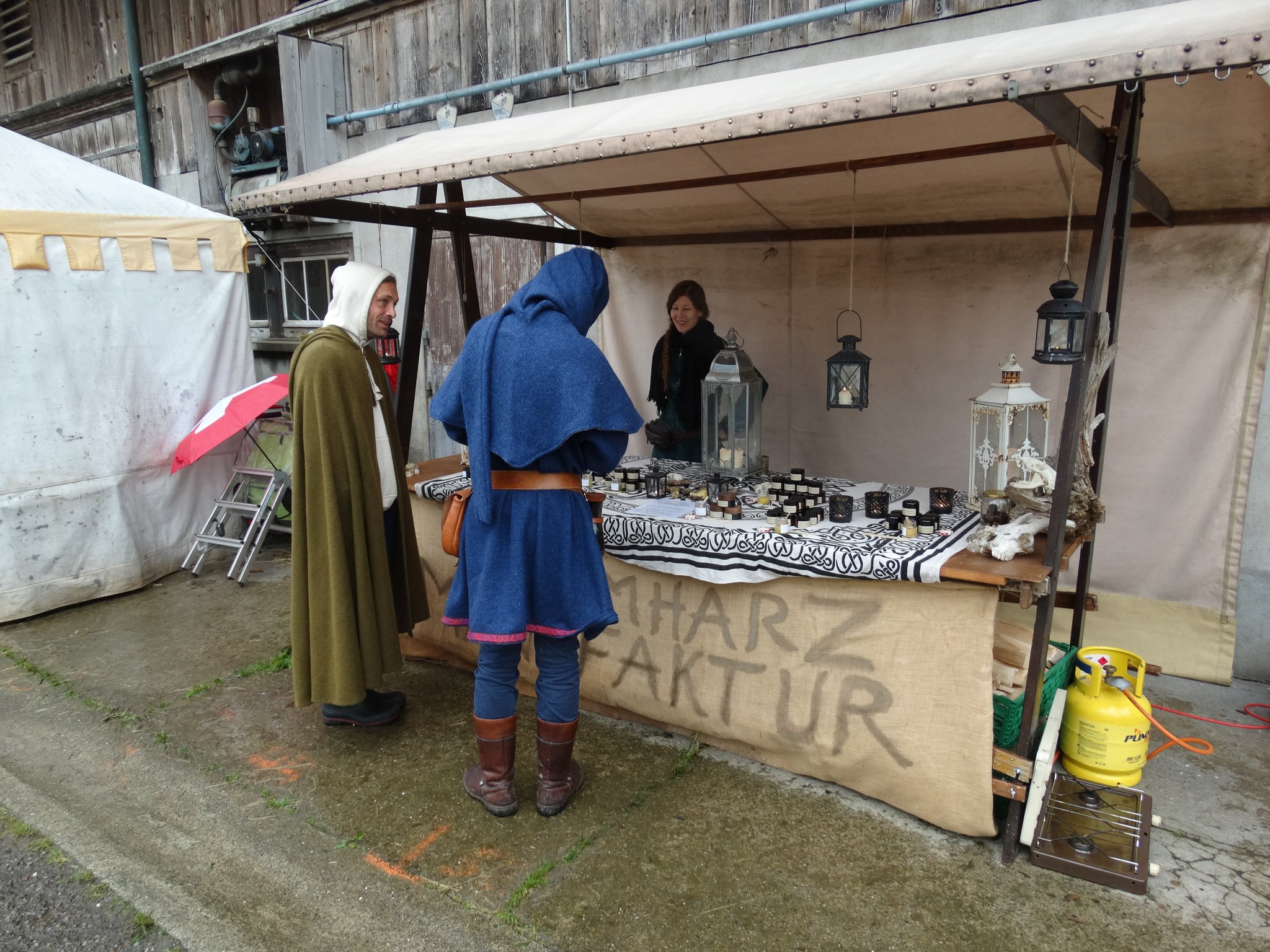 Was benötigt wurde, wurde an Märkten in Dörfern und Kleinstädten von den Händlern angeboten und meist vor Ort von den Handwerkern gleich hergestellt. Unterhaltung und währschafte Verpflegung durften auch nicht fehlen. Und genau diese Stimmung verbreitete der Anlass beim Ritterhaus, das gleichzeitig auch Tage der offenen Tür anbot. So waren sie alle nach Bubikon gezogen: Schmiede, Schwertfeger, Gaukler, Zauberer und Märchenerzähler, zumeist in passenden mittelalterlichen Outfits. Selbst Wege und Wiesen, wo die Zelte der Marktfahrer aufgeschlagen waren, präsentierten sich authentisch schlammig – ein Leckerbissen für Leute mit Fotokameras... (bn)
