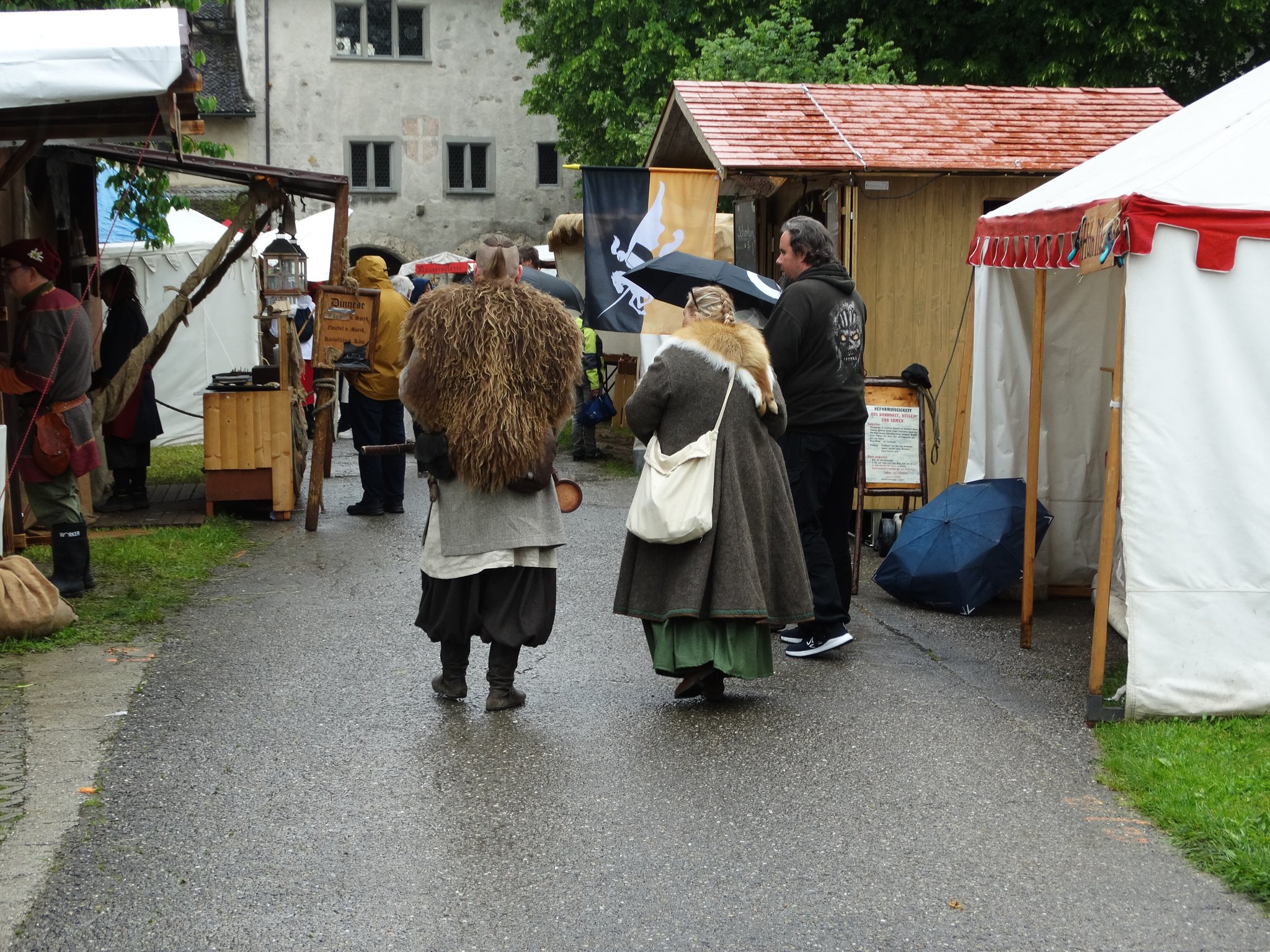 Eines vorweg: Das Wetter stimmte am Samstag (1. Juni 2024) perfekt zum grossen Mittelaltermarkt im Hof des Ritterhauses Bubikon. Denn das Mittelalter war keine Periode der Klimaerwärmung, sondern einer kleinen Eiszeit. Die Menschen hungerten wegen Missernten, scharten sich frierend um wärmende Feuer und trugen durchwegs dicke Kleider aus wollenem oder leinenem Zwilch, aus Leder und Fellen. Das Leben war hart, und Alltagswerke wie Äxte, Messer und Waffen waren nicht Deko, sondern nötig, um auch längere Schlechtwetterperioden und unsichere Zeiten durchzustehen.