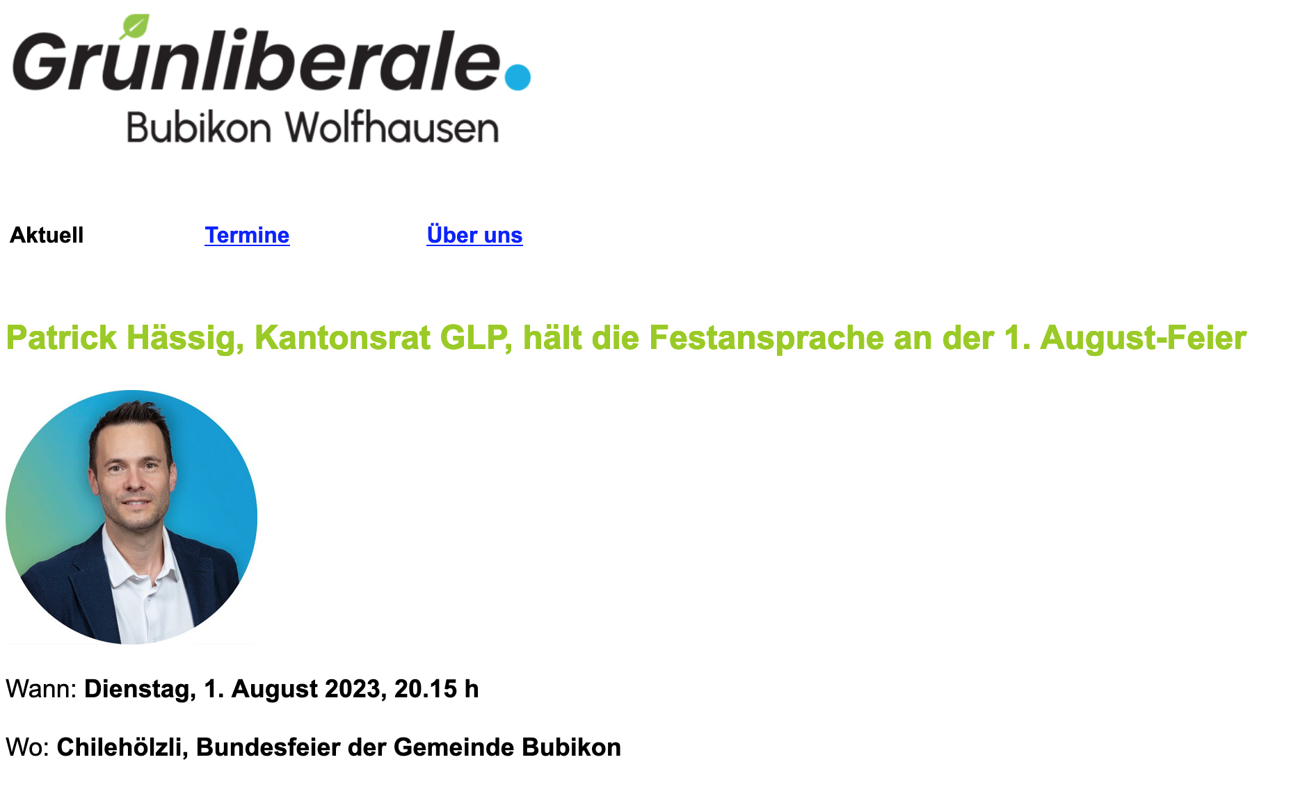 Ohne aktuelle Website geht es heute kaum mehr – das gilt, allerdings mit Einschränkungen, auch für die Bubiker Ortsparteien. Interessant dabei: Vor allem die grossen Parteien legen grossen Wert auf Tradition. SVP, FDP und Die Mitte zeigen auf ihren Internetseiten stolz den mittelalterlichen Ritterhaus-Treppengiebel, den die Bubiker Gemeindeverwaltung – ganz im Gegensatz dazu – gerne aus ihrem Erscheinungsbild verbannen würde.