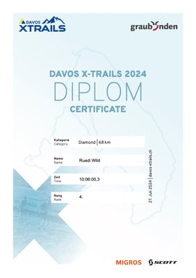 Erfolgreiche Teilnehmer am diesjährigen Berglauf X-Trails in Davos : In der Diamond-Distanz über 68 Kilometer hat der Wolfhauser Thomas Muggli-Stokholm in der Kategorie M60 den ersten Platz errungen. Ebenfalls über die Diamond-Distanz von 68 Kilometern belegte Ruedi Wild vom TV Bubikon in der Kategorie M50 den vierten Rang. buebikernews gratuliert herzlich! (bn)