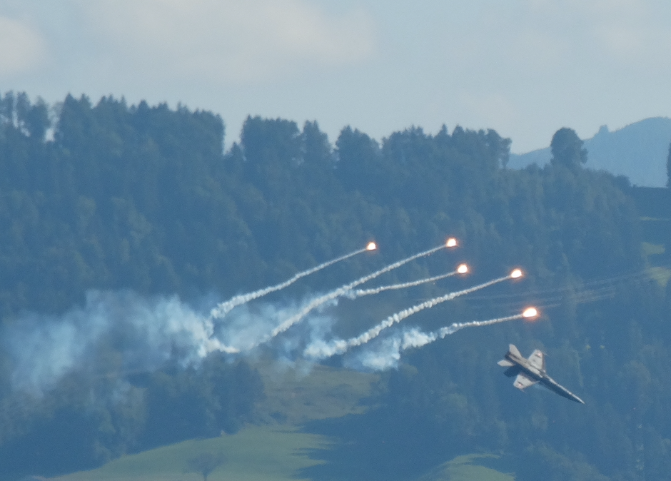 Auch am Samstag zeigte eine F/A-18-Hornet der Schweizer Luftwaffe eine Solo-Show am Rapperswiler Seenachtsfest, die in Wolfhausen nicht zu