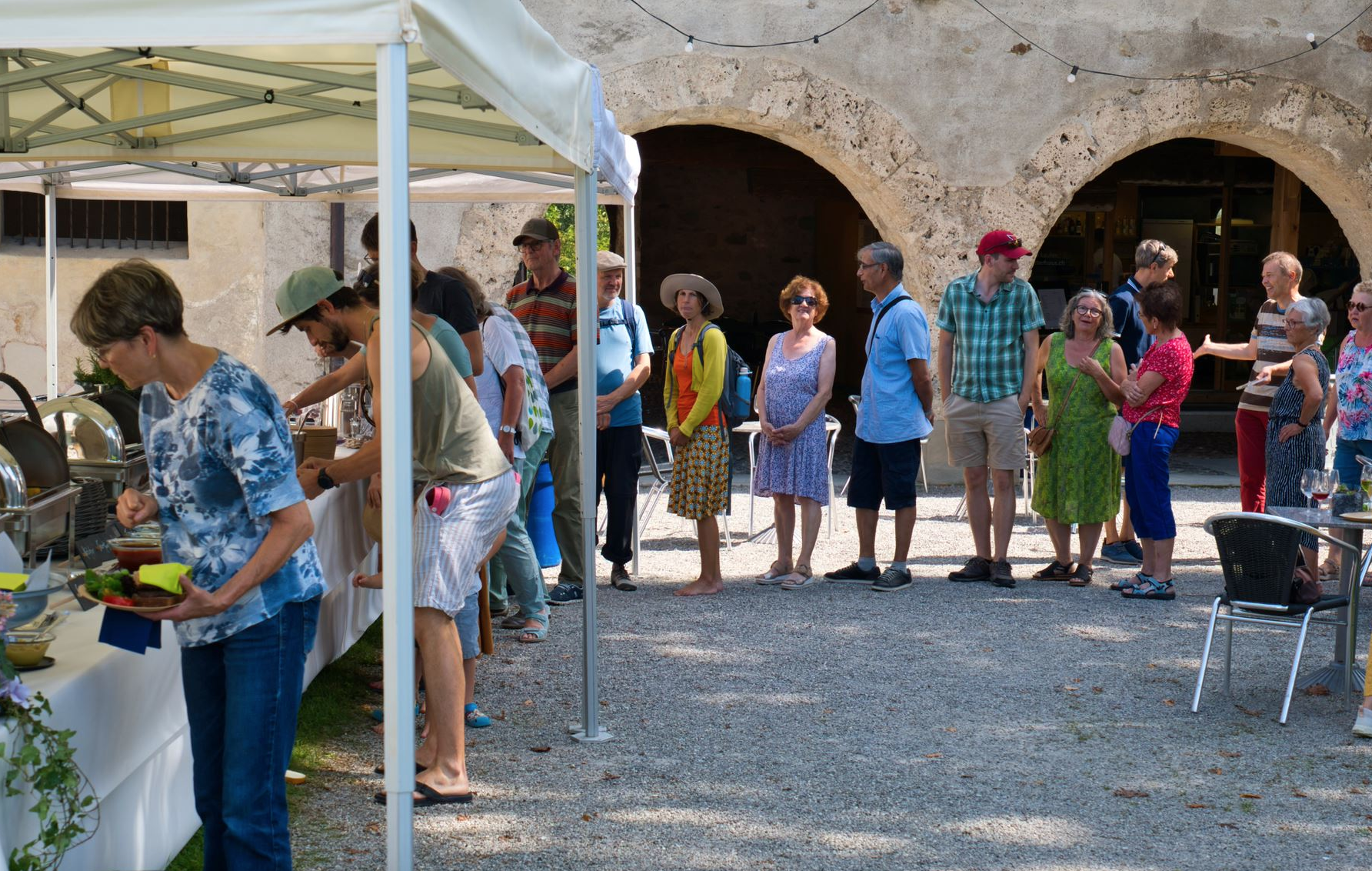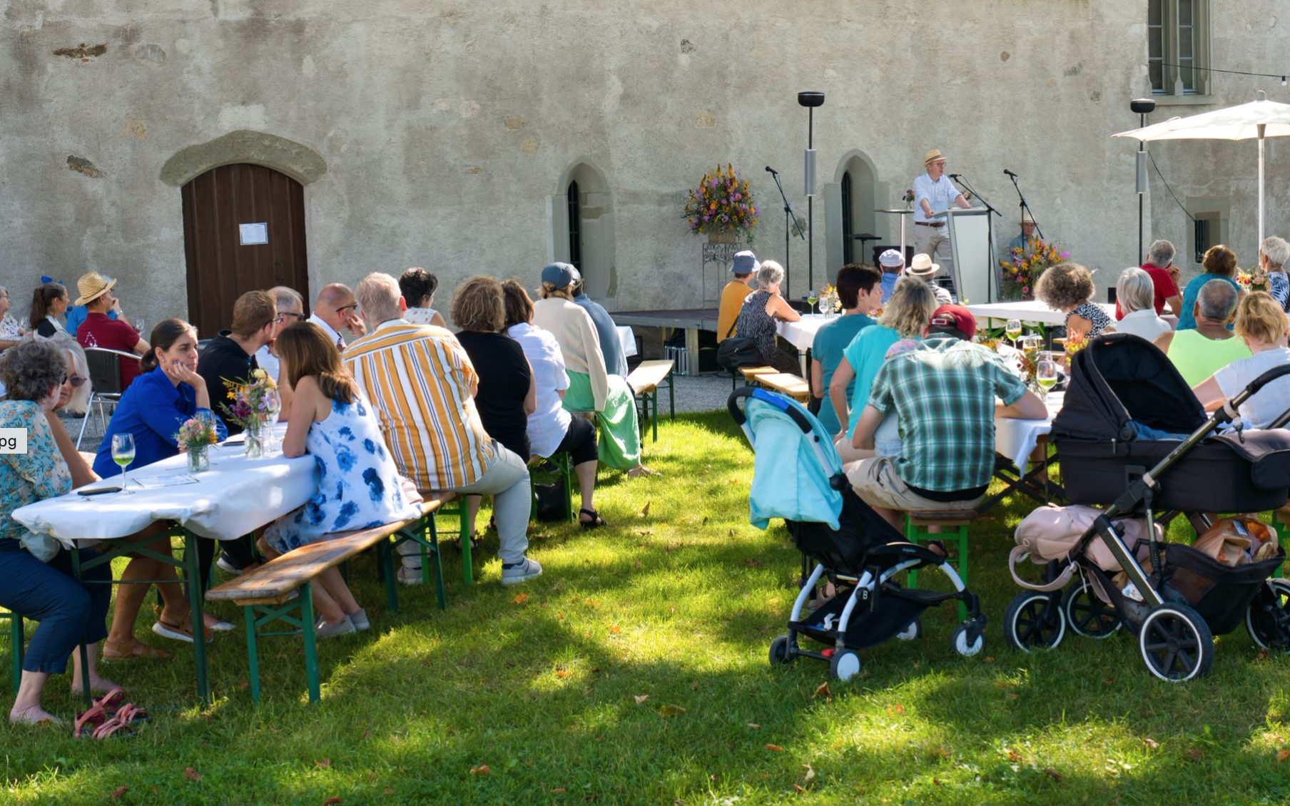 Was gehört zu einem sommerlichen Fest, zu welchem der Gemeinderat die Bevölkerung einlädt? Zunächst einmal ein repräsentativer Schlosspark. Dann ein Apéro zur Begrüssung, gefolgt von einer Weindegustation der einheimischen Winzergenossenschaft zur Vertiefung der edlen Geschmackserlebnisse.