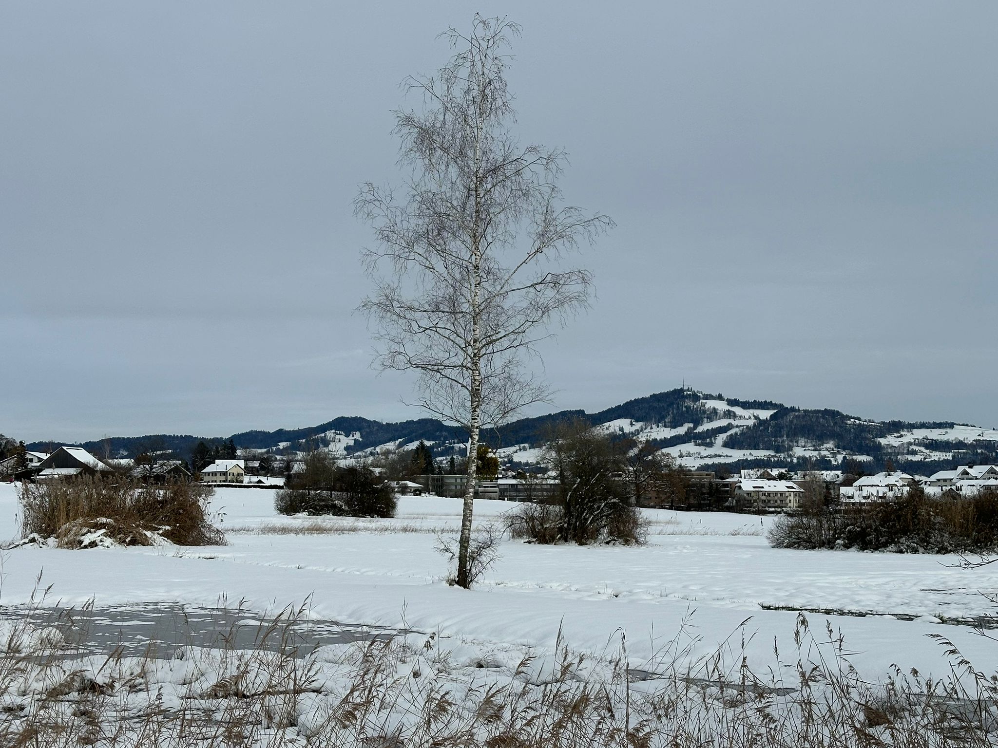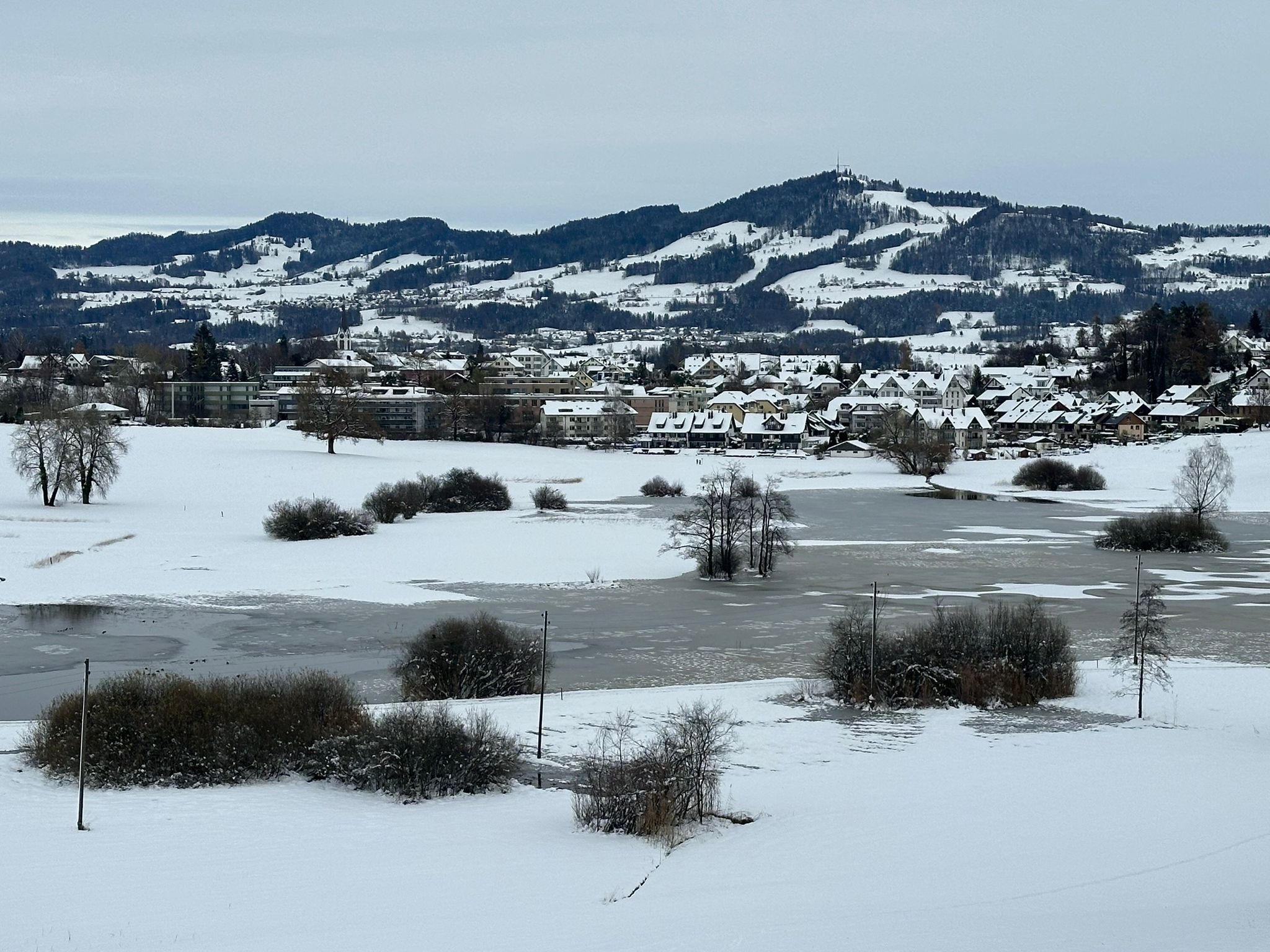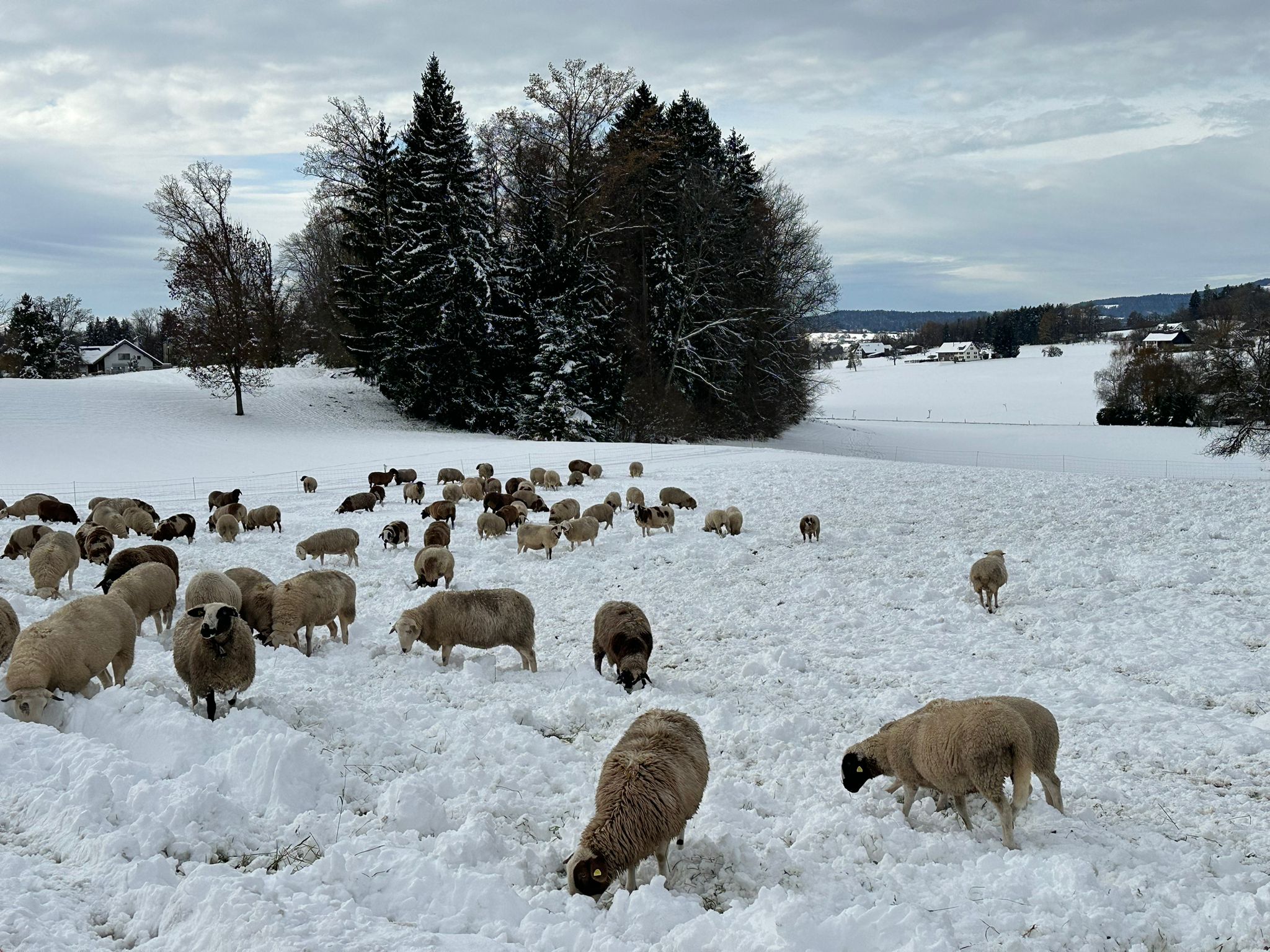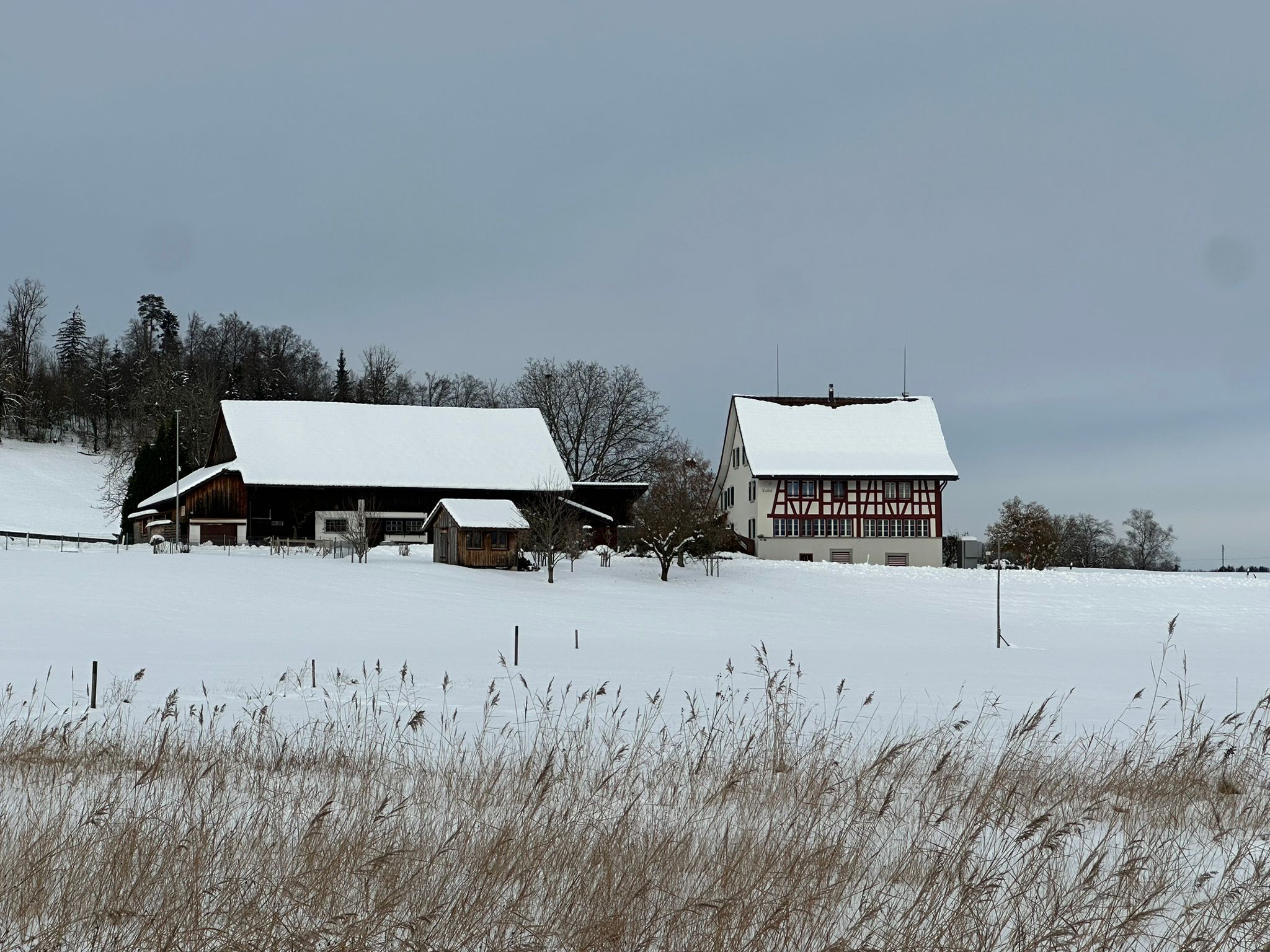 Zwischen Wolfhausen und Bubikon erstreckt sich eine Naturlandschaft, die – solange noch kein Windrad vom Hombergchropf her dröhnt – an sich schon märchenhaft ist, aber ganz besonders dann, wenn es frisch geschneit hat. Bereits liegt auf dem gestauten Hüsliriet eine dünne und noch unvollständige Eisschicht – natürlich noch gesperrt, aber trotzdem rekordverdächtig früh im November. Auch eine Schafherde auf Wanderschaft rastet auf einer improvisierten Weide in der Nähe unseres Teilzeit-Seeleins, das still und starr ruht...ein Adventsmärchen pur, obschon noch gar nicht Advent ist. (bn)