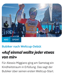 Gestern Montag (23. Dezember 2024) berichtete «zueriost», das Onlineportal des «Zürcher Oberländers», über einen Grüninger, der in Val Gardena sein Weltcup-Debut erlebt habe. Über Nacht ist nun aus dem Grüninger ein Bubiker geworden. In die heutige Printausgabe des ZO hat es die Änderung allerdings nicht geschafft: Hier ist nach wie vor von «Alessio Miggiano aus Grüningen» die Rede.