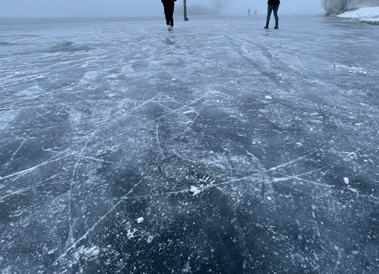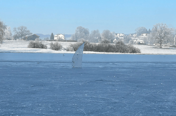 Anonyme Leserreporter haben uns Beweise für seltsame Vorgänge auf dem Natureisfeld Hüsliriet zugeschickt: Zum einen zeugen eindeutige Spuren auf dem Eis davon, dass sich bereits Schlittschuhläufer auf das noch nicht freigegebene Eis begeben haben müssen. Zum andern wurde tatsächlich eine Haifischflosse auf dem Eis gesichtet – wohl ein Überbleibsel aus der letzten Eiszeit, denn beim Hüsliriet handelt es sich ja um eine geschützte Glaziallandschaft... (bn)