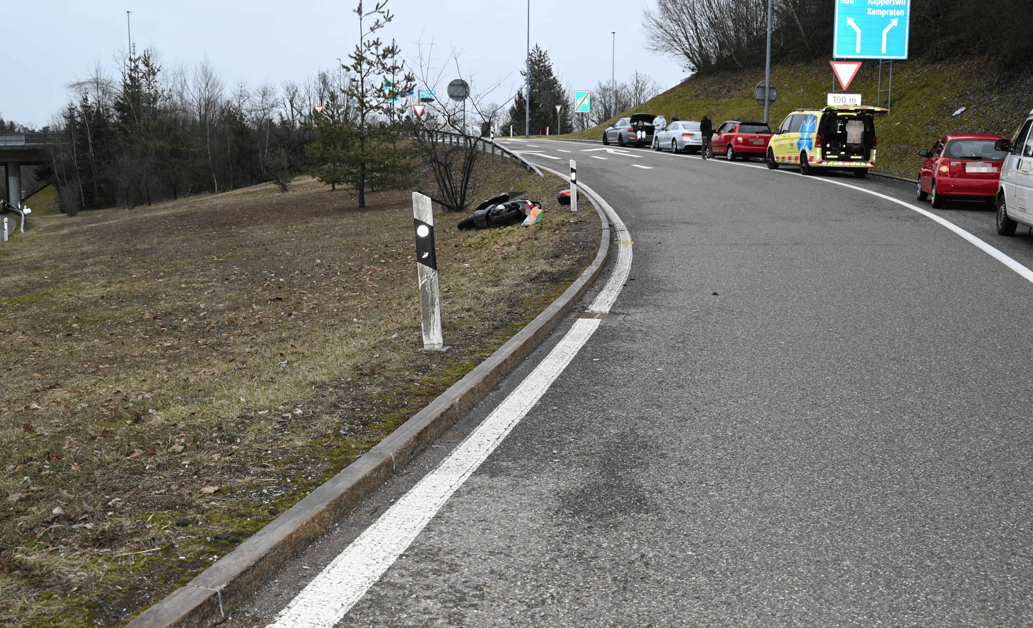 die Autobahn bei der Ausfahrt Rapperswil zu verlassen. Während des Befahrens der Ausfahrt kam er mit seinem Motorrad von der Fahrbahn ab und im Wiesland zu Fall. Durch den Sturz