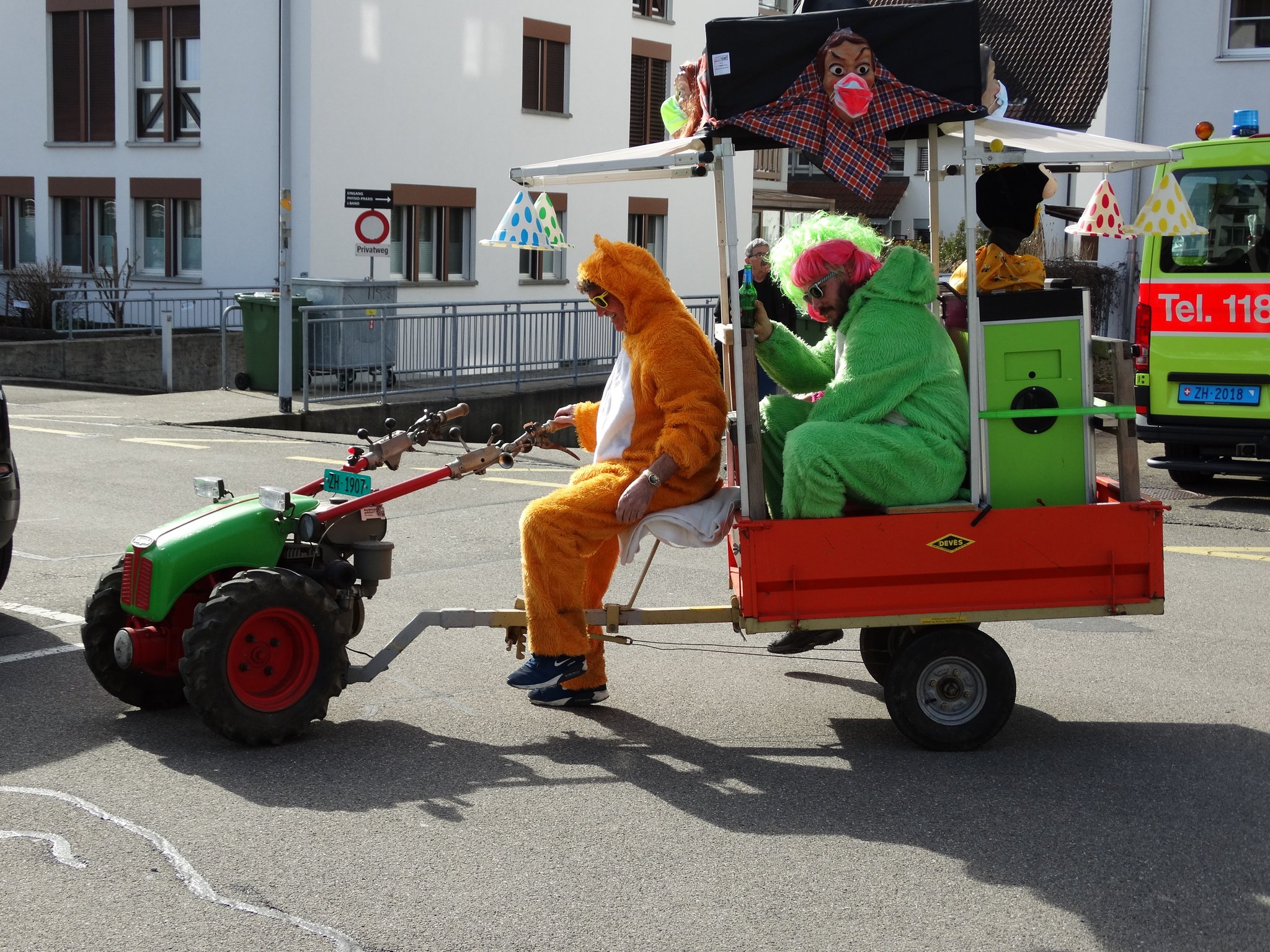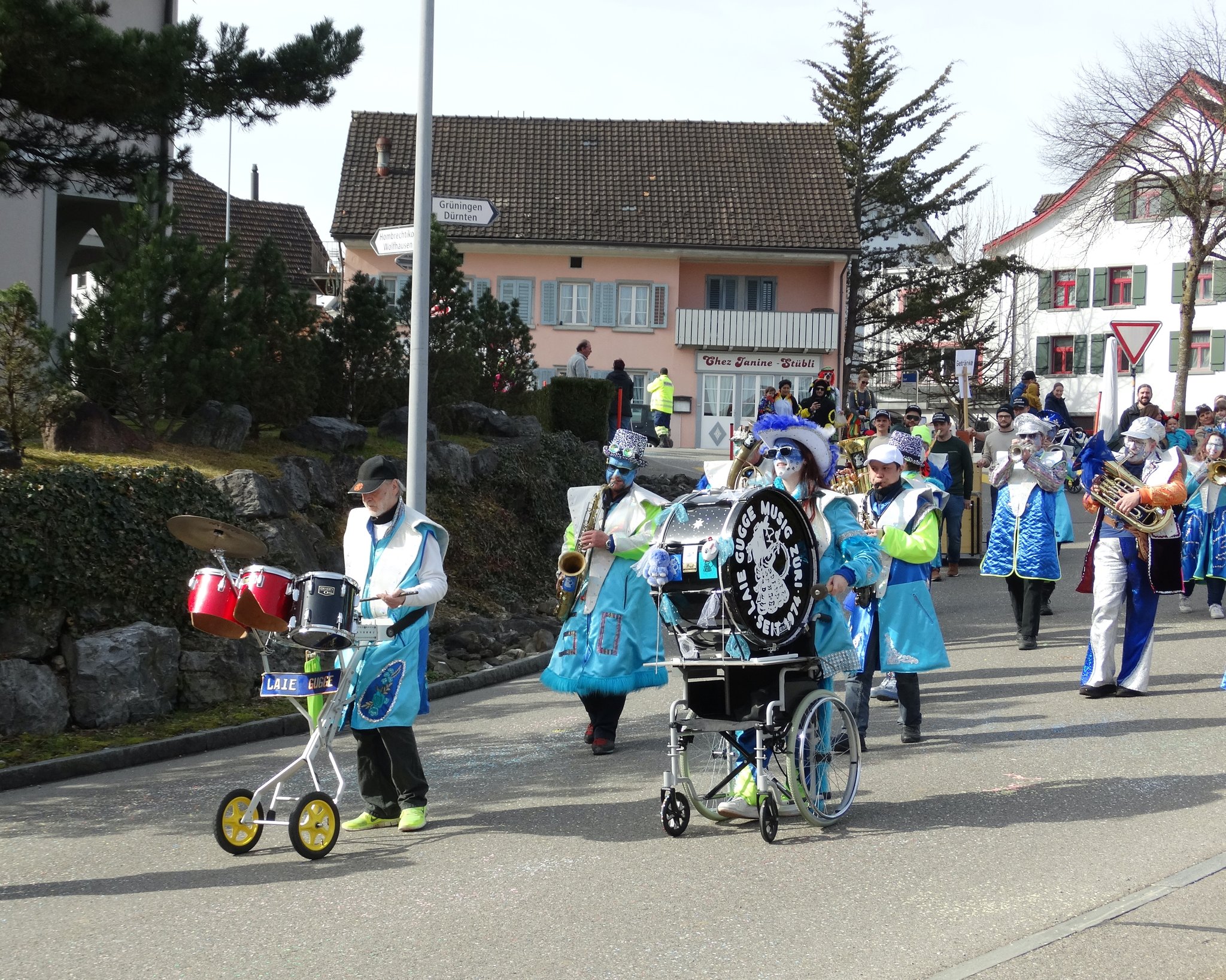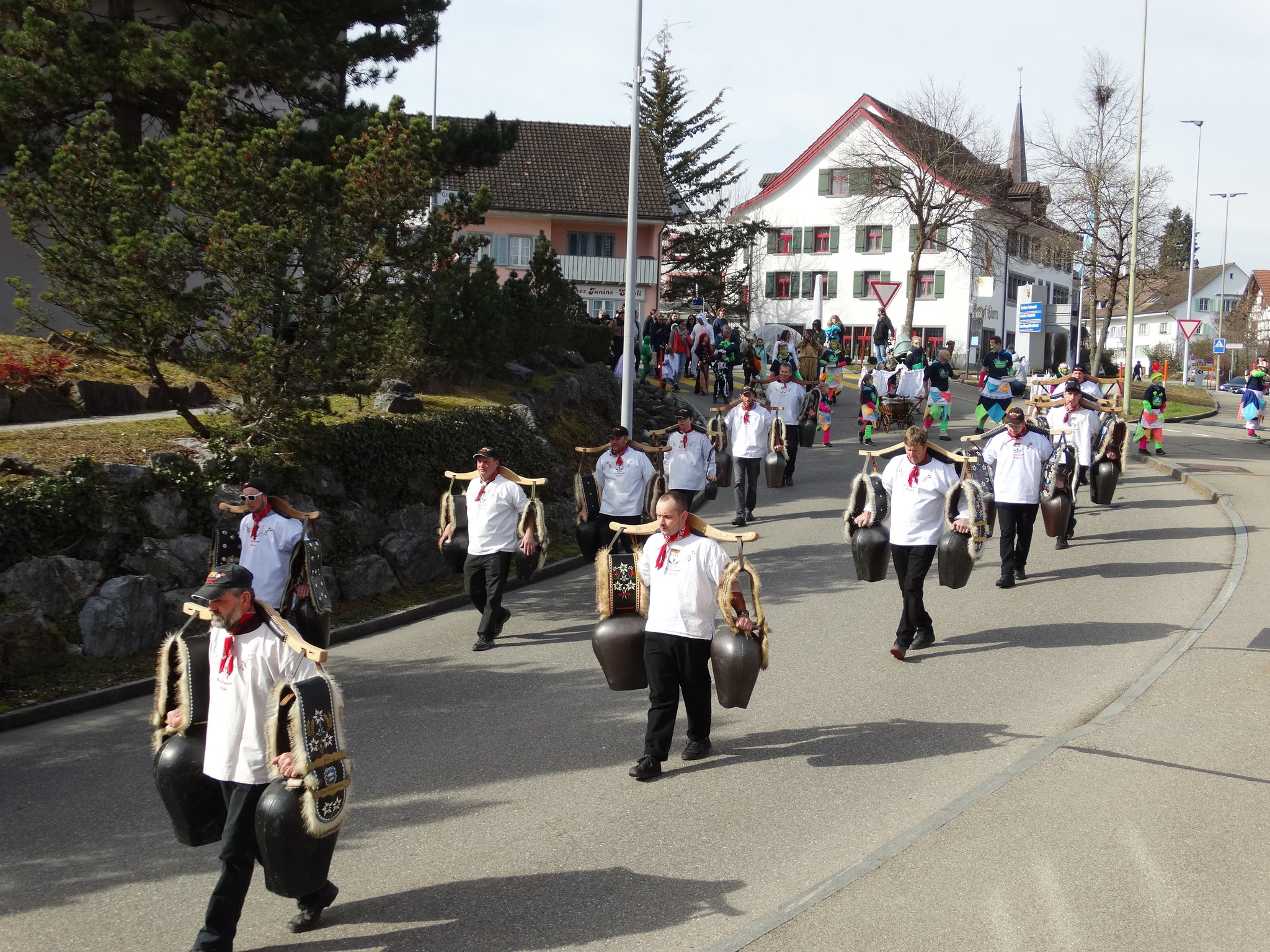 In den letzten Jahren hat es meistens gepasst: Wenn in Bubikon Kinder-Fasnachtsumzug ist, beginnt der Frühling. Oder zumindest herrscht frühlingshaftes Wetter. So war es auch am Samstag, 22. Februar 2025: Eine bunte Schar kleiner und grosser Fasnächtler (wie gendert man das? Fasnächtelnde?)  besammelte sich nach 12 Uhr auf dem Chilbiplatz und setzte sich punkt 12.30 Uhr in Bewegung, eskortiert von den Batzberg Trychlern und von der Laie Gugge aus Zürich-Altstetten. Und natürlich begleitet von Muselmanen der Hilaria, von Après-Skifahrererinnen, von Hülsebrüdern, falschen Feuerwehrleuten und falschen Polizisten, und, und, und. Viele Mamis und Papis, die den verkleideten Nachwuchs begleiteten, hatten sich ebenfalls in Kostüme gezwängt. Und natürlich durfte am Schluss des Umzugs die Stärkung mit Würstli, Brot und Getränk nicht fehlen. (bn)