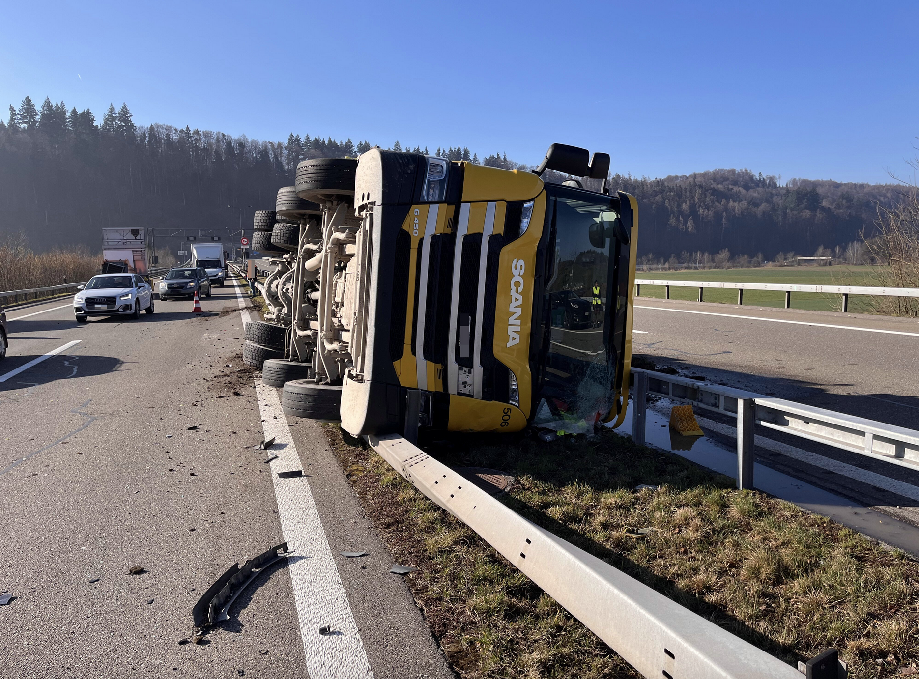 Der Lastwagenfahrer wurde dabei leicht verletzt. Er wurde vom Rettungsdienst ins Spital gebracht. Ein Teil des im Lastwagen geladenen Bohrschlamms lief im Bereich der Mittelleitplanke aus und musste zusammen mit einem Teil des restlichen Inhalts des Lastwagens abgepumpt werden. Der entstandene Sachschaden beläuft sich auf mehrere zehntausend Franken. Der Streckenabschnitt war vorübergehend gesperrt. Im Einsatz standen neben mehreren Patrouillen der Kantonspolizei St.Gallen und dem Rettungsdienst, die zuständigen Feuerwehren und der National-Unterhaltsdienst VI. (KAPO SG/bn)