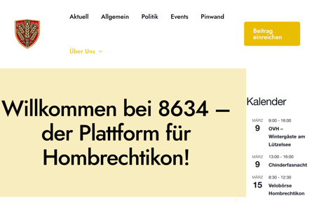 Unter der Domain https://8634.ch/ ist seit kurzem eine neue Plattform online, die sich als Forum für Vereine, Parteien und Veranstalter von Hombrechtikon versteht. Beiträge können per Online-Formular eingereicht werden. Diese werden – wenn bestimmte Regeln erfüllt sind – publiziert.