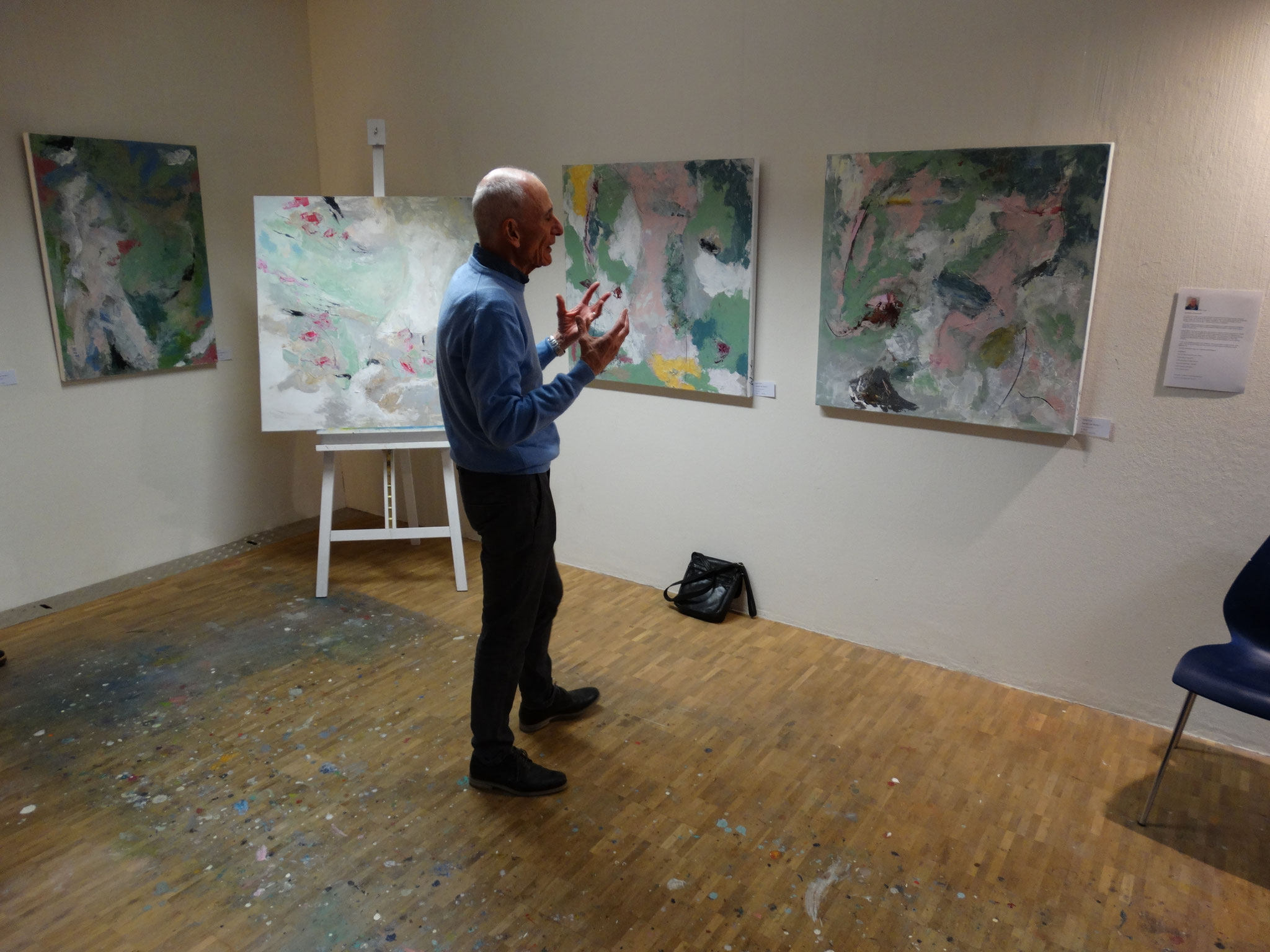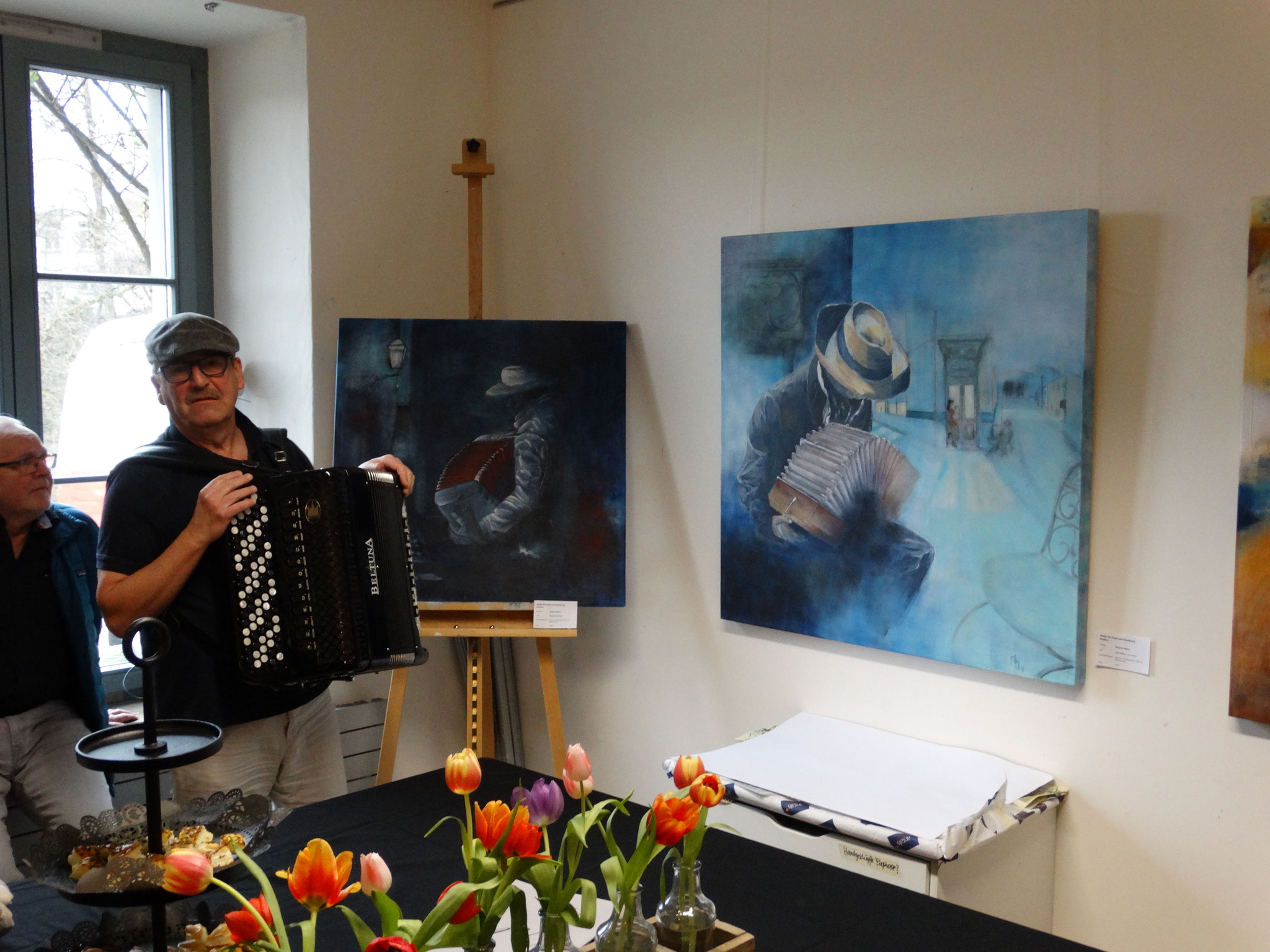 Den ersten von drei Akten bestritten dieses Wochenende (15./16. März) der Joner Walter Suter mit filigranen und sinnlichen abstrakten Bildern in Acryl-/Mischtechnik sowie der Gossauer Stephan Marty mit impressionistisch und expressionistisch inspirierten Werken, die seine langjährige Berufstätigkeit als Geografielehrer an der KZO durchblicken lassen: Landschaften in der Provence und Szenen mit MusikerInnen aus mediterranen Städten. Folgerichtig war Stephan Marty am Eröffnungstag mit seinem Akkordeon zugleich auch selber für die musikalische Umrahmung besorgt.