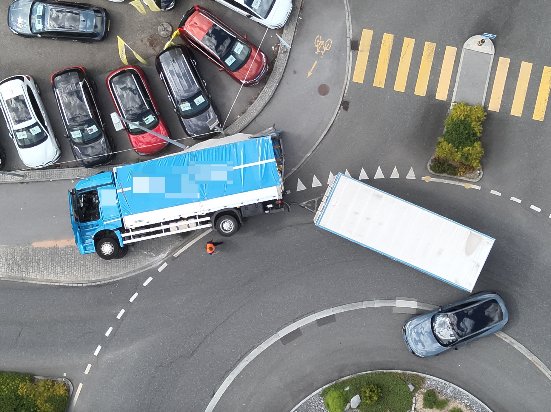 Am Freitag (16. Mai 2025), kurz nach 15 Uhr, ist ein Lastwagen beim Befahren eines Kreisverkehrs an der St.Gallerstrasse in Schmerikon zur Seite gekippt. Am Lastwagen entstand Totalschaden.