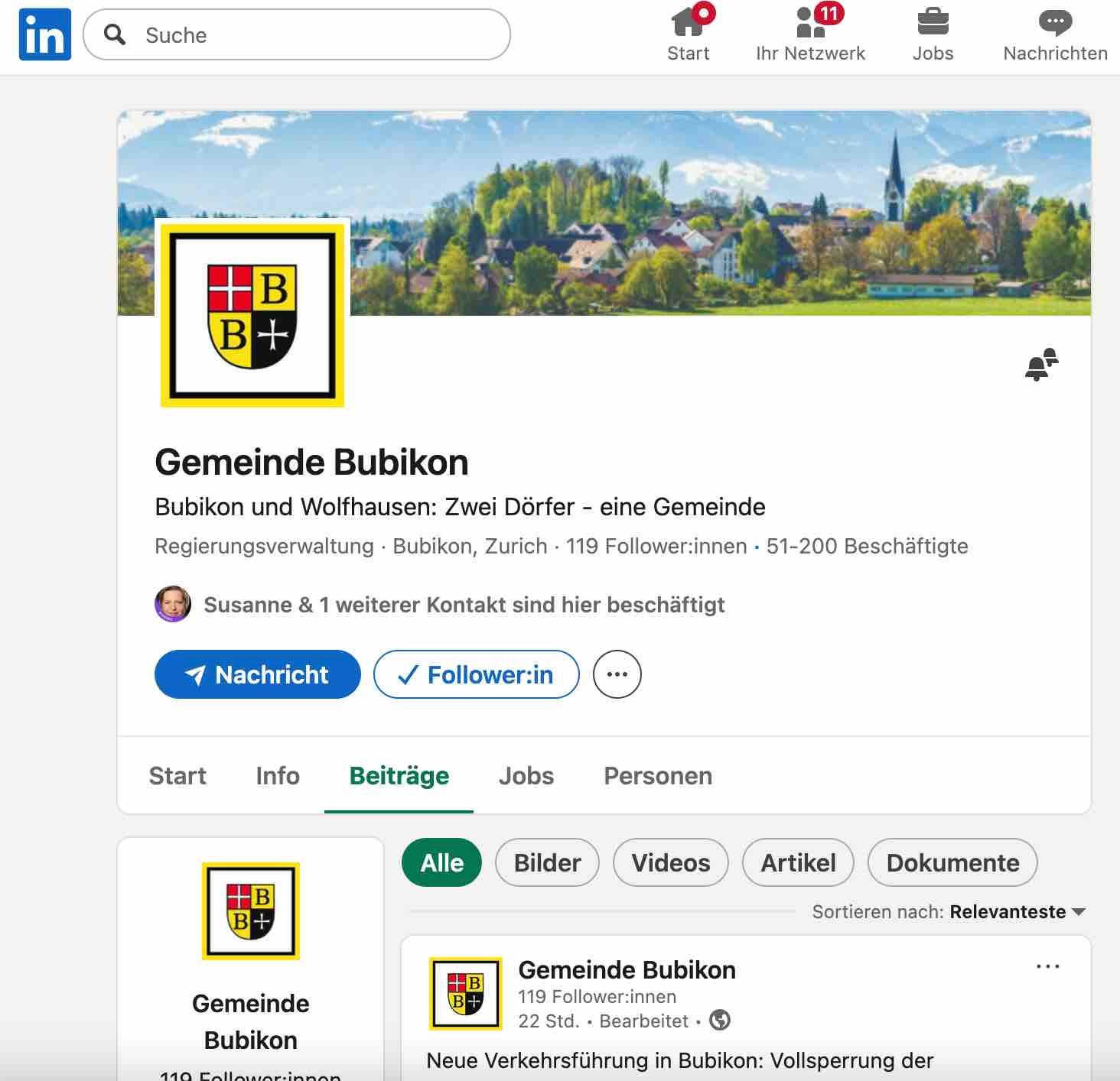 Seit einiger Zeit ist die «Regierungsverwaltung» Bubikon auch auf dem Networking- und Karriereportal «Linkedin» aktiv. Einen «Linkedin»-Account pflegen auch etliche weitere Gemeinden, nutzen diesen aber vornehmlich zur Suche nach Verwaltungspersonal.