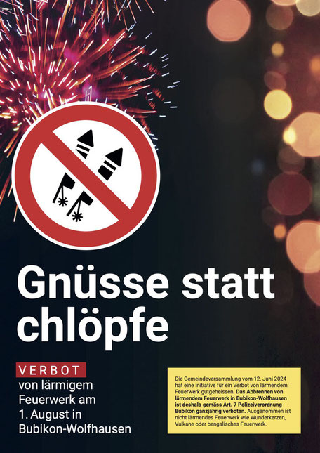 Trotz fehlender Bubiker Gemeindepolizeikräfte und eines Ordnungsbussenkatalogs wie in Gossau bleibt die seit einem Jahr in Bubikon verbotene laute Knallerei aber nicht folgenlos, wie Gemeindeschreiber Urs Tanner auf Anfrage von buebikernews versichert: «Personen, die sich von lautem Feuerwerk gestört fühlen und dies melden wollen, rufen die Kantonspolizei an. Diese wird die Personen, die gegen das Verbot verstossen, verzeigen. Die Verzeigung findet beim Statthalteramt in Hinwil statt. Dieses wird eine Ordnungsbusse aussprechen.» Und Tanner weiter: «Über eine Forderung für eine Gemeindepolizei aus Kreisen der Bevölkerung ist mir nichts bekannt».