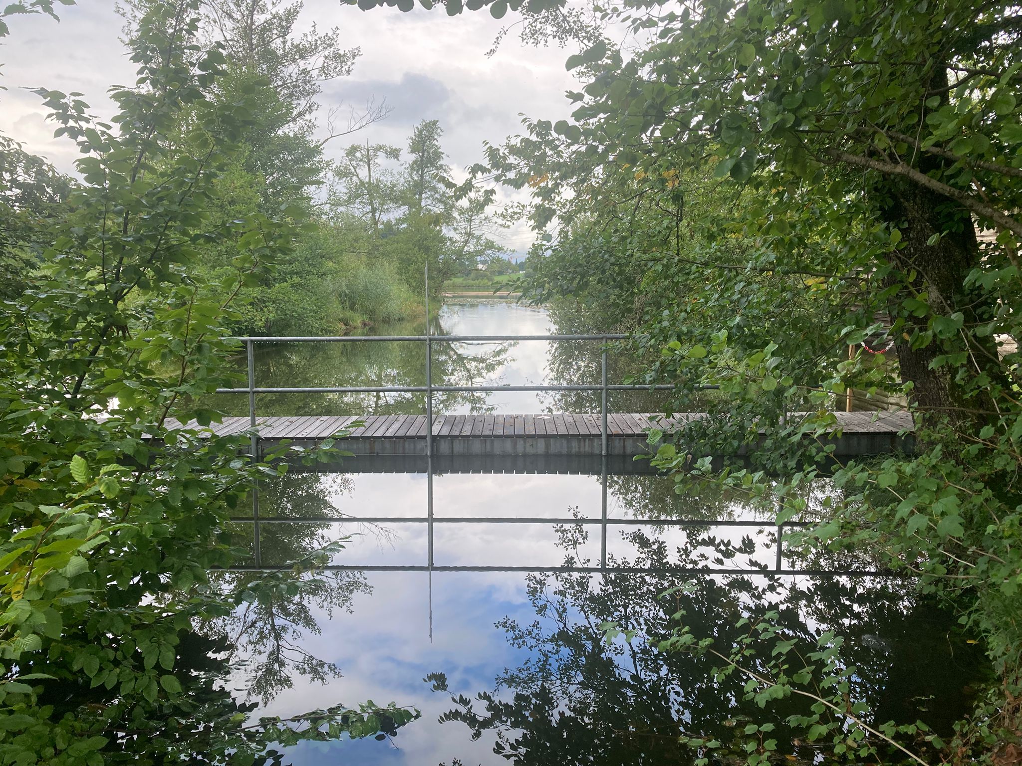 Das Brücklein beim Ausfluss, normalerweise fast einen Meter über der Wasseroberfläche, ist beinahe überschwemmt und erinnert an die Gehstege in Venedig, wenn in der Lagunenstadt Acqua alta herrscht.