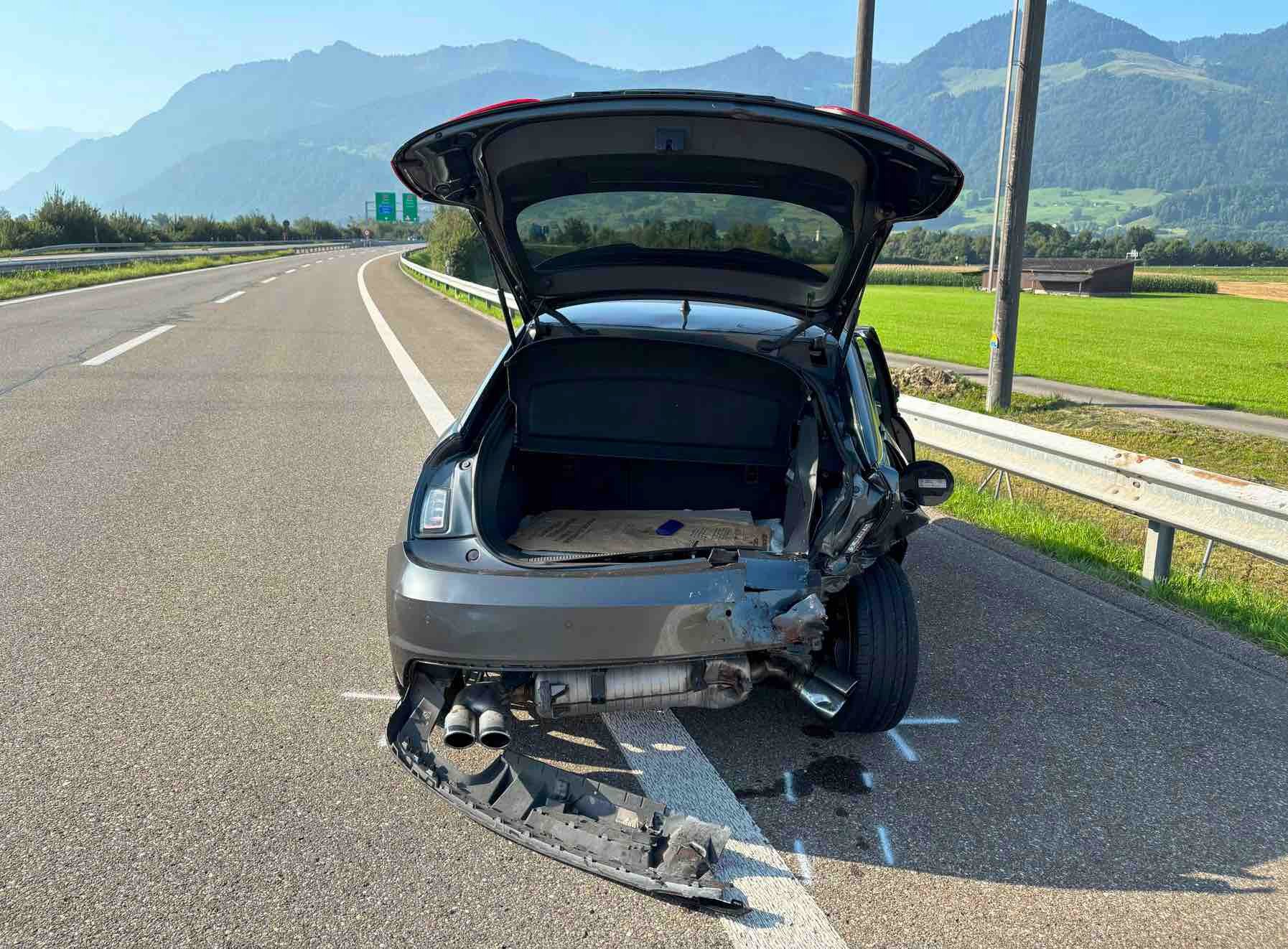 Ein 63-jähriger Autofahrer fuhr mit seinem 71-jährigen Beifahrer auf der Autobahn A15 von Tuggen Richtung Reichenburg. Aus unbekannten Gründen fuhr der Autofahrer