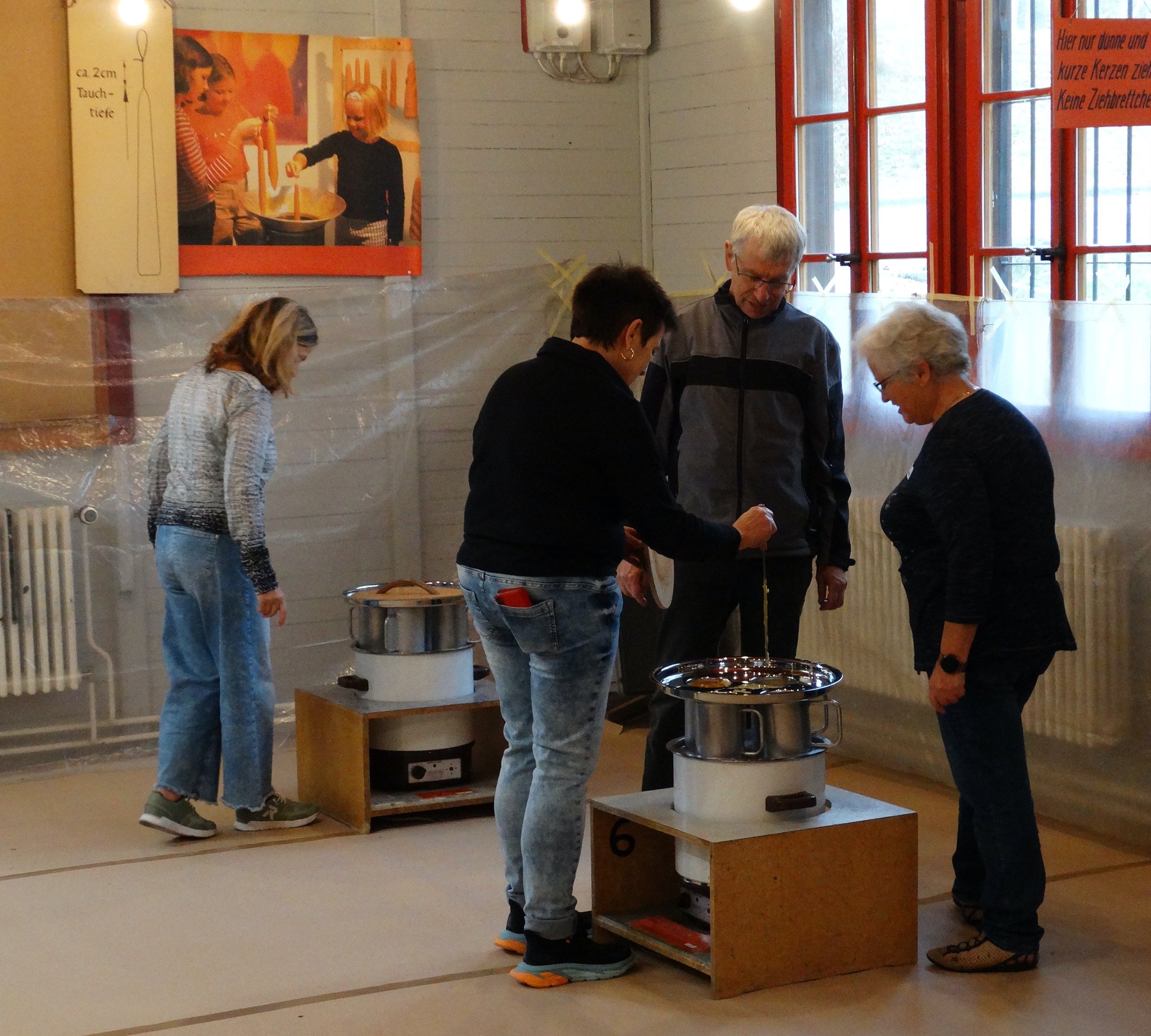 Gearbeitet wird hier noch ausschliesslich mit Bienenwachs, nicht mit modernen Stearin-Mischungen. buebikernews schaute am Samstagnachmittag (8. November 2025) den kleinen Künstlerinnen und Künstlern ein wenig über die Schultern und stellte fest: Da wird mit viel Sorgfalt, viel Ausdauer und viel Vorfreude auf Weihnachten gearbeitet. Eine Mutter mit zwei Kindern hat Grosses vor: «Zu jedem Weihnachtspäckli soll es für die ganze Familie auch eine selber gezogene Kerze geben.» Eine andere Familie hat eine ebenfalls eine «Grossproduktion» gestartet, für Christbaumkerzen.