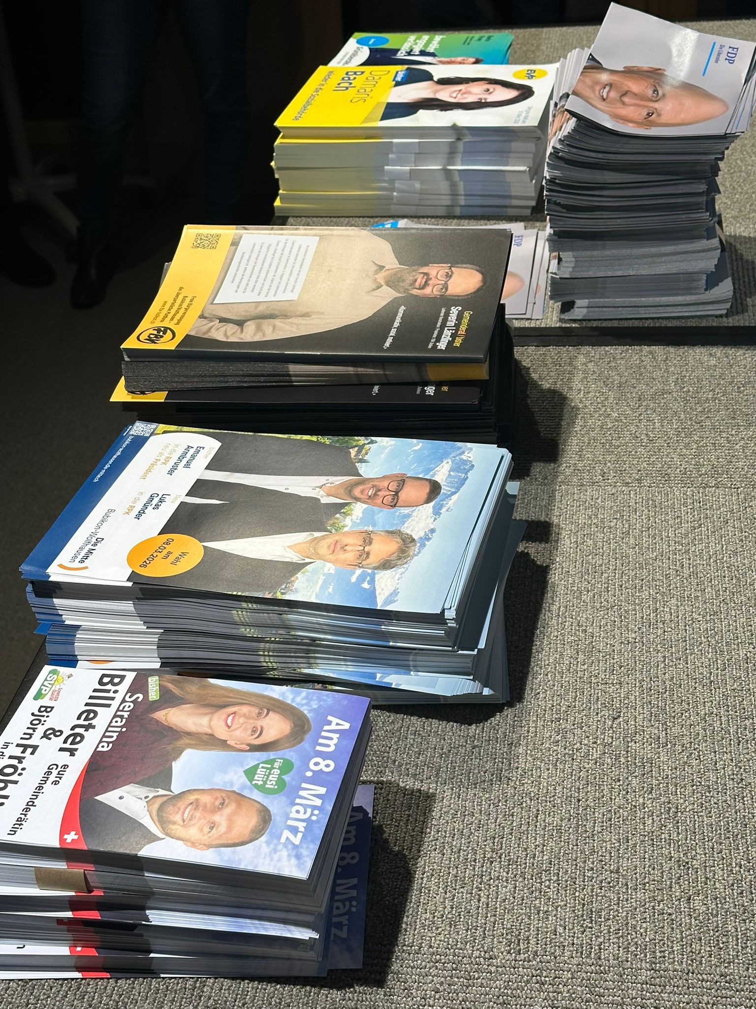 Die rund 3700 Kuverts mit allen Flyern sollen im Februar in alle Haushaltungen von Bubikon und Wolfhausen verschickt werden – auf den Zeitpunkt hin, wenn auch die offiziellen Wahlunterlagen der Gemeinde mit den Wahlzetteln eintreffen.
