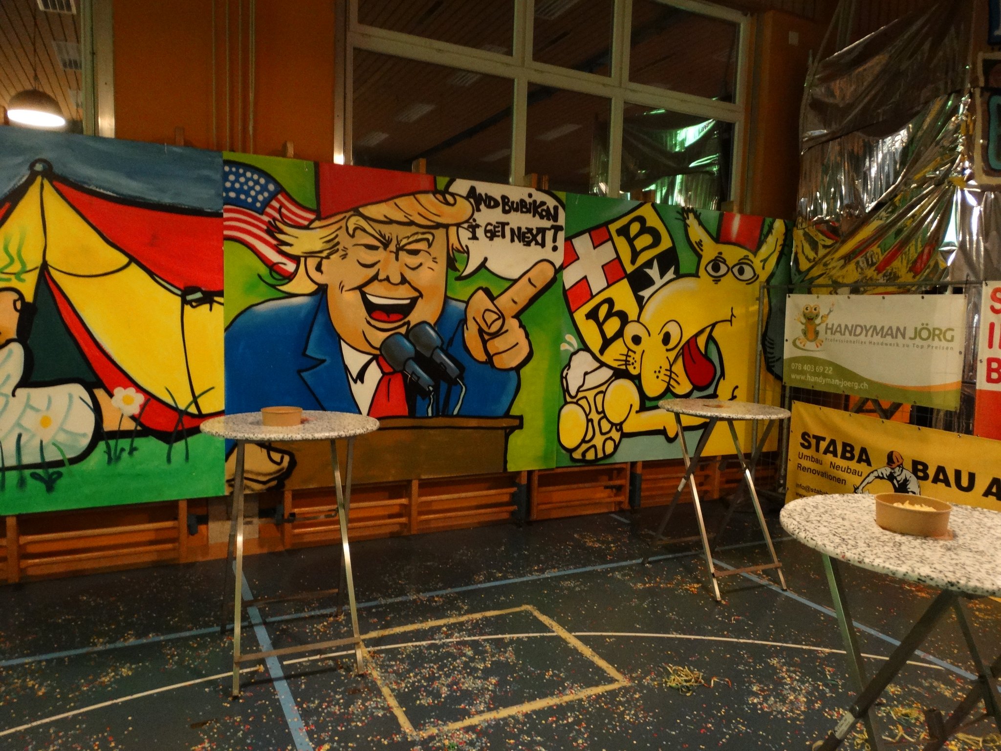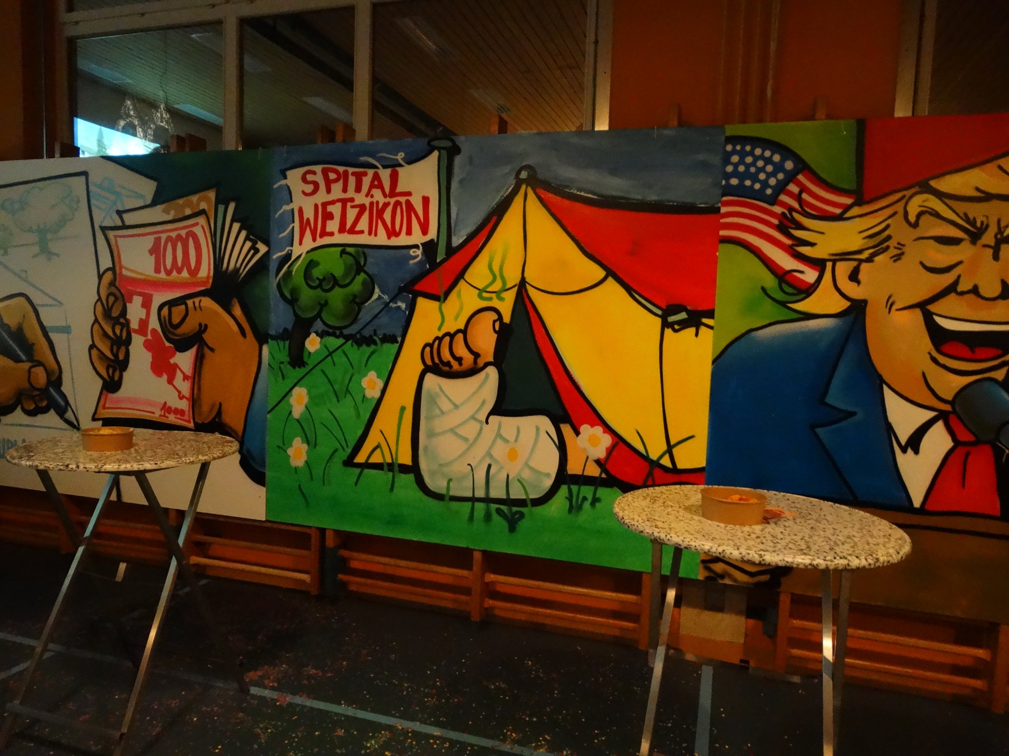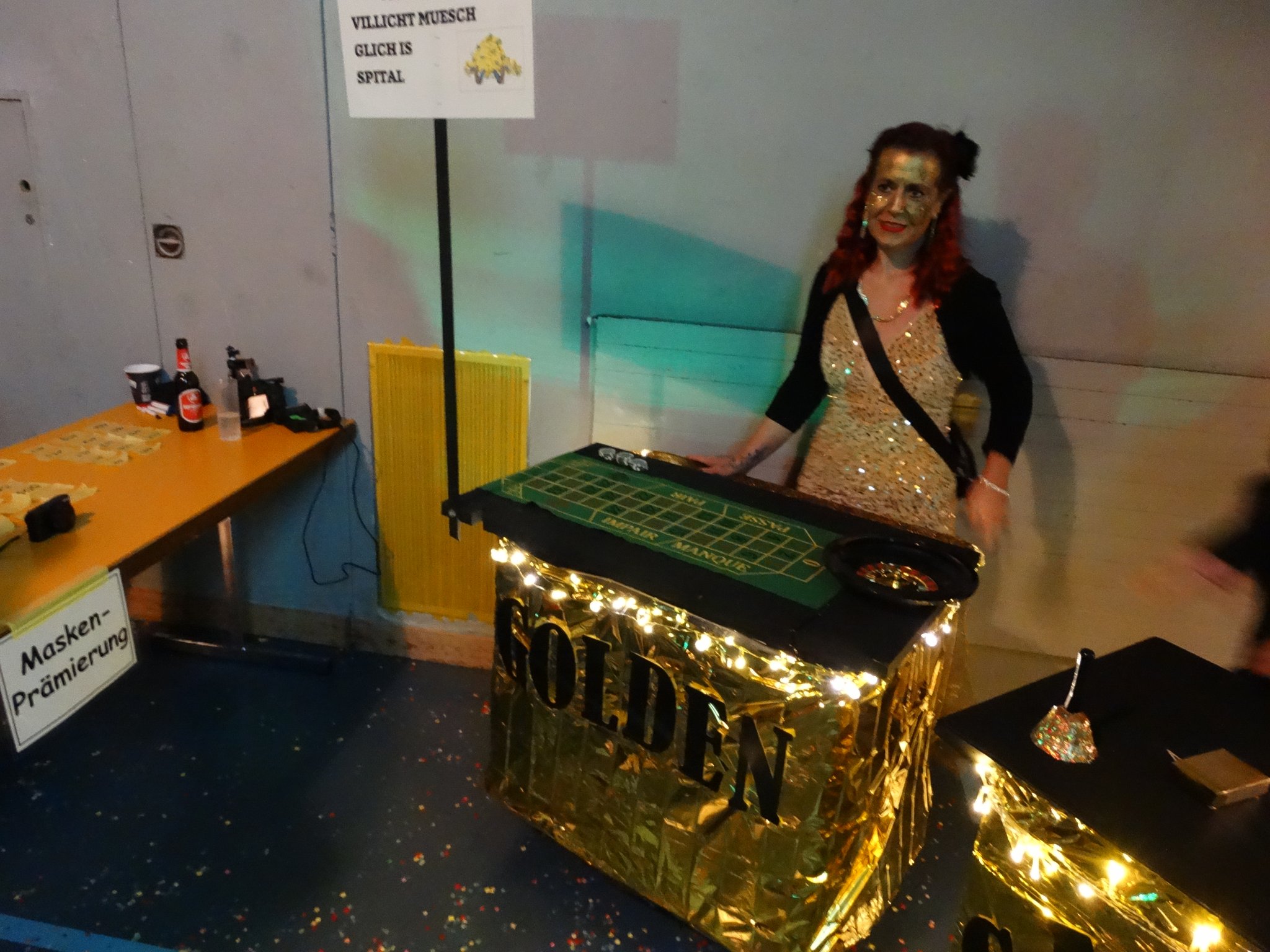Trump mit Hilaria-Fez statt mit MAGA-Hat droht ab der Saal-Deko mit der Übernahme Bubikons, auf ein bekanntes Gesicht aus der Bubiker Dorfpolitik kann mit Alko-Shots geworfen werden, eine schneidige Croupier-Truppe mit mobilem Casino sammelt das Geld für das GZO, das Bubikon dem Spital verweigert hatte – das sind nur einige der vielen Eindrücke von der Fasnachtsparty in der Spycherwise, formerly known as «Maskenball».