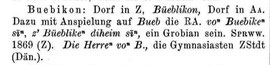 Auch Bubikon hat es zu einem Eintrag gebracht: "Vo Buebike si", so lernen wir, galt eine zeitlang als Synonym für "ein Grobian sein". Dieses Schicksal teilt Bubikon mit dem aargauischen Büblikon, das aber heute keine selbständige Gemeinde mehr ist, sondern zu Wohlenschwil gehört. (17. September 2010)